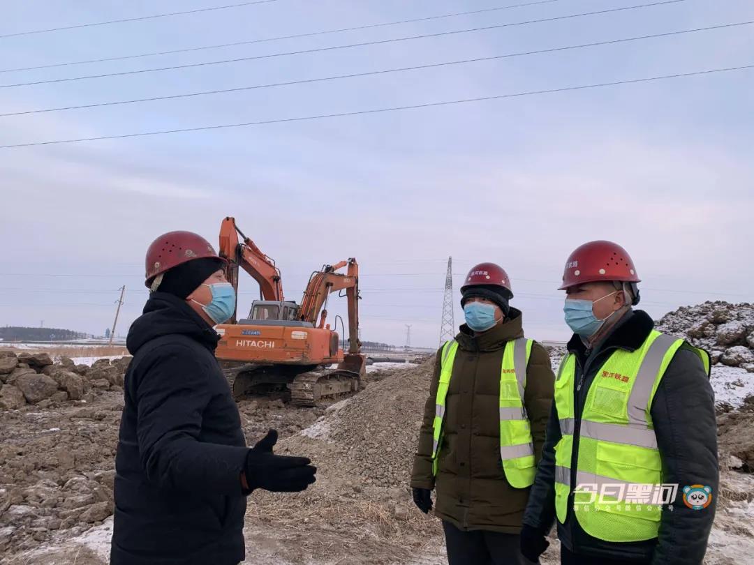 北黑铁路(龙镇至黑河段)升级改造项目承载着市民的期盼,黑河铁路升级改造建设有限责任公司全员精神饱满,紧张忙碌,在保证工期的同时严把质量关。“我们与市直各部门加强沟通,形成合力,确保各项批复顺利完成。同时,聘请国铁有经验的专业技术、管理人员做指导,每周六公司召开交班会,对一周工作进行调度。当前的疫情给施工进度造成较多困难,但我们坚持在三九天不停工,各项工作有序进行。截至1月18日,完成新建混凝土拌和站7座、钢筋加工场5座,场地硬化4.26万平方米,路基清表351.24万平方米,修建施工便道121.59千米,路基挖方395.88万立方米,填方37.16万立方米,土方外运225.57万立方米,桥梁桩基195根,桥梁承台3个,涵洞基坑挖方2.16万立方米,框构桥基坑挖方4.27万立方米,隧道口土石挖方9.6万立方米,隧道管棚施工104根4170延米,自来水管线迁改完成558米。”黑河铁路升级改造建设有限责任公司副总经理张喜军说。