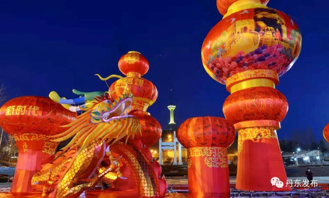 ▲元宝山公园广场上的大型灯组营造了喜庆祥和的节日氛围。