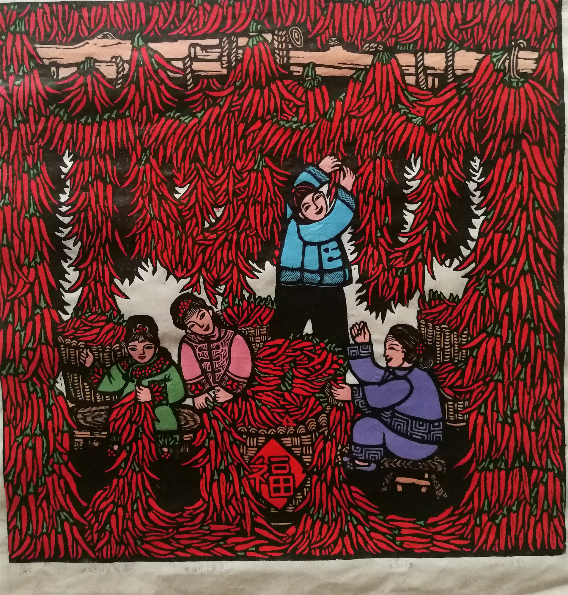 桓仁传统木版年画是辽东地区民间美术的重要表现形式,也是民间在年节用于祈福迎新的一种表达方式。清光绪三年,桓仁由于交通便利,一时间水陆码头商贾云集,经济繁荣,吸引了大批关外移民落户,也带来木版画这一民间手工技艺,其与桓仁当地民风民俗融合形成了独具特色的桓仁传统木版年画,并逐渐形成规模,盛极一时。20世纪80年代初,当地有很多农家子弟和木刻工艺爱好者。他们一手持农具,一手拿起画笔和刻刀,农闲时参加县文化馆举办的农民版画培训班,逐渐走上艺术创作之路。桓仁版画展现了浓郁的地域文化,其作品题材广泛,内容丰富,既有历史传说、风土民情,又有年节习俗、日常游戏等内容,大胆粗狂的创新技法开创了地方现代民间绘画的先河,佳作不断涌现。