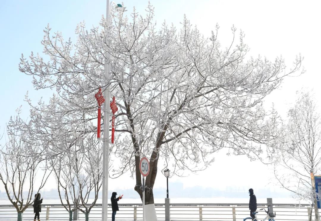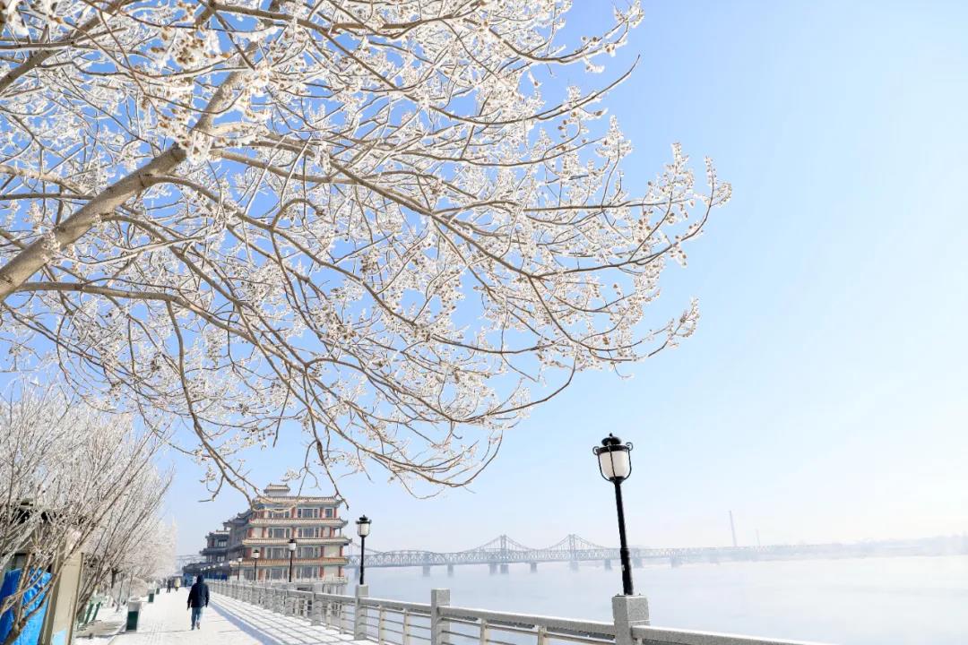2月4日是农历腊月廿三,北方习俗中的“小年”。丹东市出现今冬最美雾凇景观,鸭绿江畔银装素裹,吸引许多市民前来观赏拍照。