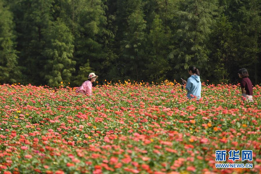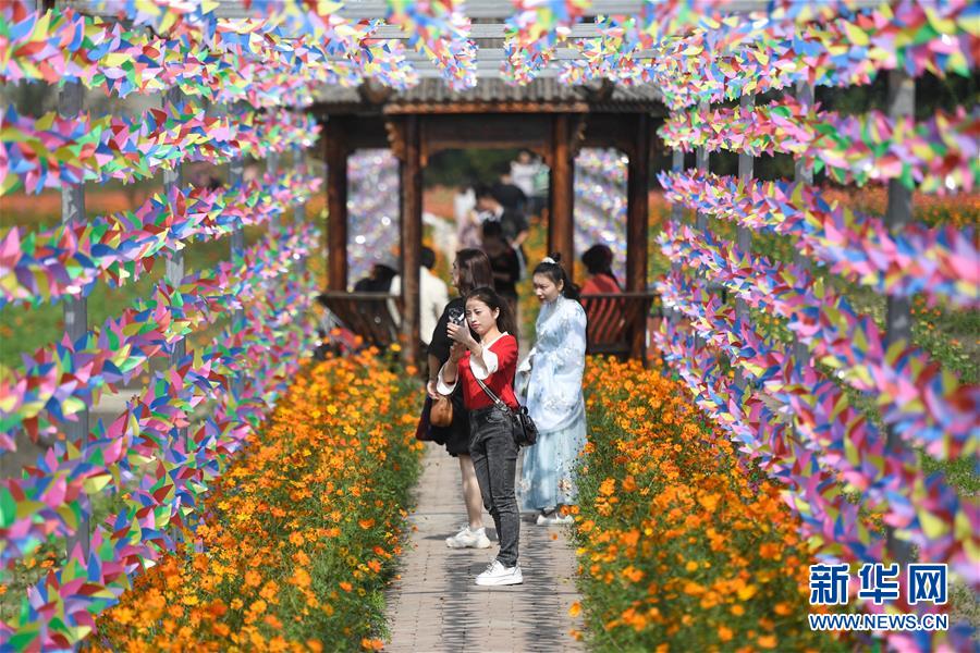 10月24日,游客在练市镇荃步村的风车长廊里留影。 当日,浙江省湖州市第七届湖羊文化节在南浔区练市镇荃步村开幕,品味柴火羊肉、游览格桑花海、穿行风车长廊、湖羊展示与互动等活动吸引了大批游客前来体验。 据了解,南浔区练市镇基本形成了从种羊繁育、湖羊饲养、湖羊销售、羊肉餐饮到羊皮制革及成衣的较为完整的产业链。