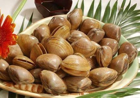 7.杂色蛤: 杂色蛤,是贝壳类海产品,隶属帘蛤科,辽宁称蚬子(xianzi),山东称蛤蜊(gala)。也是国家地理标志产品。东港杂色蛤5大系列40余个品种远销世界各地。