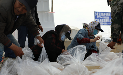 5月24日上午,东港市椅圈镇某虾圈,当地的养殖户正在将15000个海蜇苗装袋、充氧、装车。