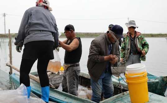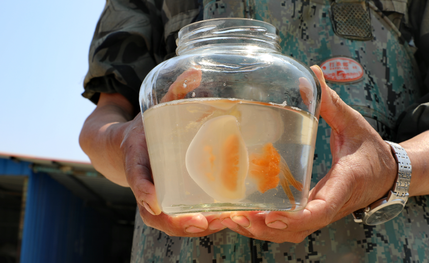 “我们家是做海蜇苗孵化养殖的,每年的五一前后,就会将虾圈里养殖的海蜇苗捞出,售卖给当地或者外地的养殖户。”该虾圈的负责人邹丽向记者介绍,每年的四月初,孵化基地就开始进行海蜇苗孵化,经过二十天的孵化后,将孵化出的海蜇苗投入进虾圈中培育。海蜇苗幼体成乳白色,刚孵化好的幼苗对水质、气温极其敏感,在投放的时候需注意水温和气候的变化,当海蜇苗生长至五厘米左右的时,就可以从虾圈中捞出,进行售卖。