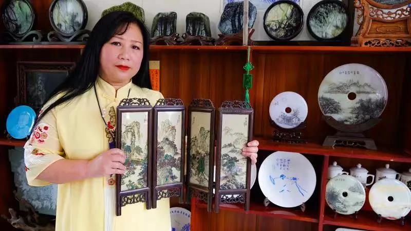 回忆最开始与艺术结缘,景晴要感谢她的父亲。1968年,景晴生于宽甸,她的父亲是一名教师,受其影响,很小的时候,她就对艺术表现出浓厚的兴趣,喜好字画诗文这些中国传统文化。1989年,从辽东学院(前身)毕业后,她即投身与美术相关的工作。2012年的一天,弟弟找到景晴,希望她设计一些玉雕的底稿。在翻阅资料时,她对雕刻有了更深的理解,并喜欢上了这门艺术,开始试着自己雕刻。“雕刻的工具太重,而且玉石太硬,实在是刻不动。”面对困难,景晴开始翻阅资料,寻找破解之法。最终,她发现玉石雕刻中有一个专业名词:玉石线雕。明确了突破的方向,她开始思考能否将其与绘画相结合。由于缺少经验,她开始遍访宽甸当地的雕刻师傅。在此期间,她结识了自己雕刻方面的启蒙老师耿保平。与他的交谈中,景晴对雕刻有了新的认知,在思想不断地碰撞中,萌生了采用小型雕刻机,使用线刻技艺雕刻的想法。
