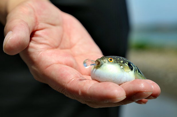 本次放流的河豚鱼苗又叫红鳍东方鲀,因含河豚毒素而闻名。该物种主要分布在中国近海(东、黄、渤海),是一种海淡水洄游鱼类,春季亲鱼由海逆河产卵,红鳍东方鲀游动缓慢,受惊吓时会吸入大量空气或水,将鱼体鼓胀成圆球状,同时皮肤上的小刺竖起,借以自卫,以吓退掠食者。红鳍东方鲀曾经是鸭绿江段以下主要捕捞物种之一,近几十年来,随着捕捞量的增加,红鳍东方鲀野生种群规模不断减小、资源不断衰退。