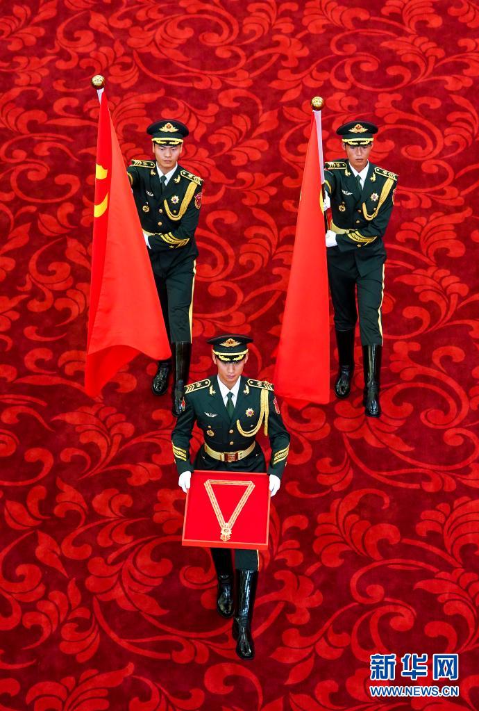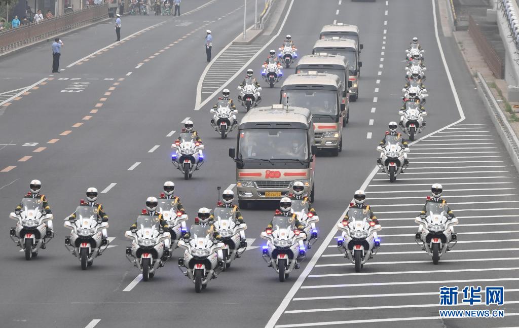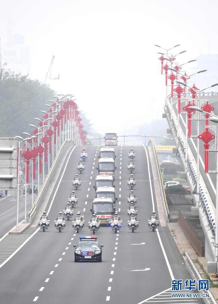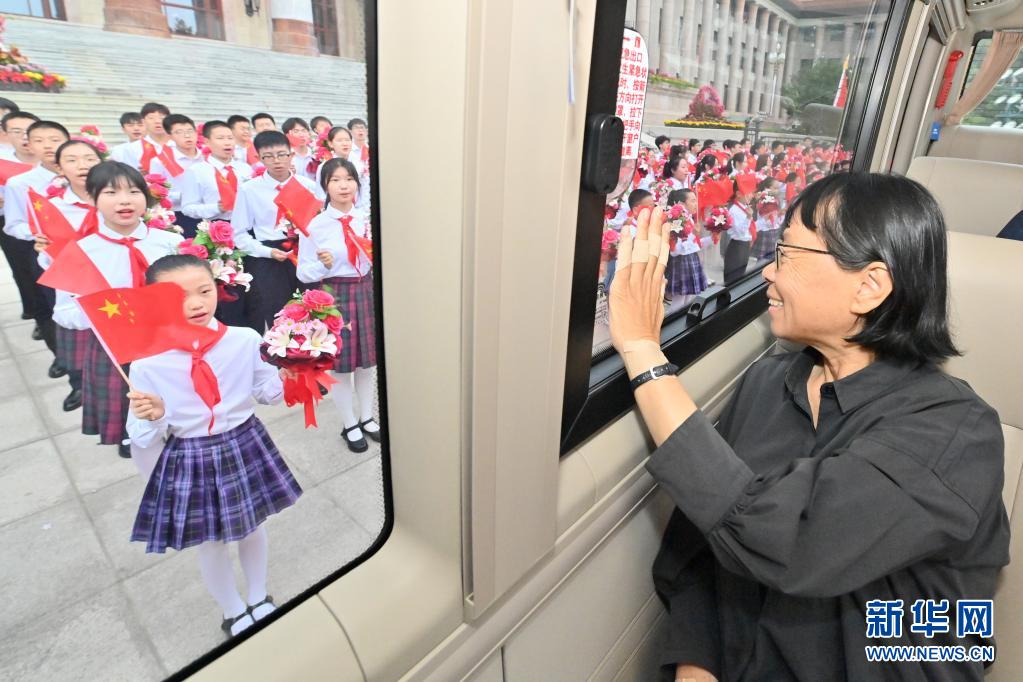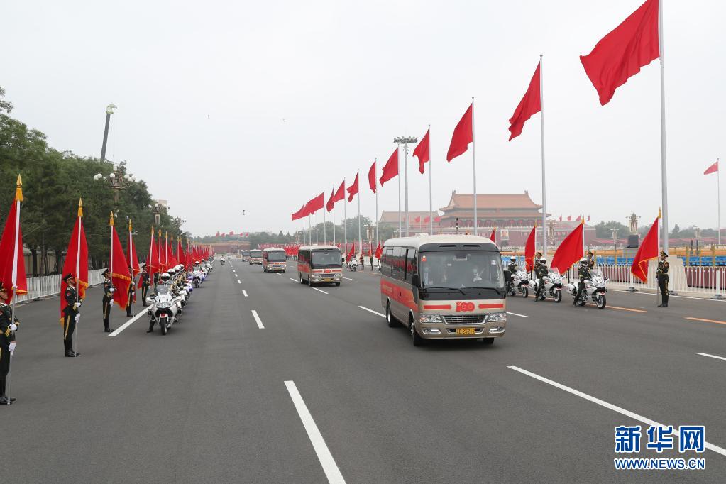 6月29日,庆祝中国共产党成立100周年“七一勋章”颁授仪式在北京人民大会堂金色大厅隆重举行。这是“七一勋章”获得者集体乘坐礼宾车从住地出发,前往人民大会堂。新华社记者 李贺 摄