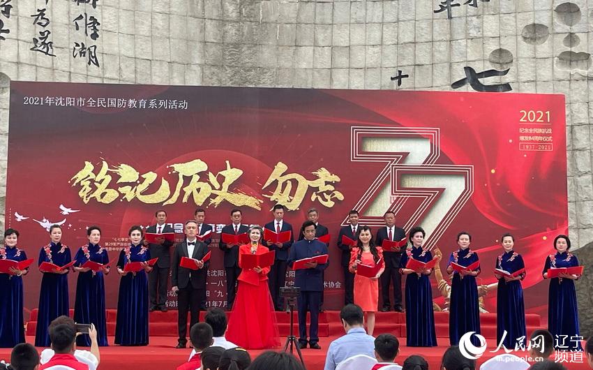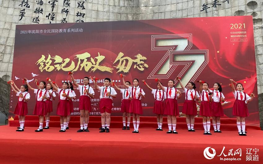 人民网沈阳7月7日电 (王斯文)7月7日上午,为激发民众爱国热情,进一步扩大纪念活动的社会影响力和公众参与度,由沈阳市委宣传部、沈阳市教育局主办,沈阳“九·一八”历史博物馆、辽宁省朗诵艺术协会承办的“树爱国之心 立报国之志——铭记七七事变爆发84周年”全国红色博物馆联动系列活动在沈阳“九·一八”历史博物馆残历碑广场举行。