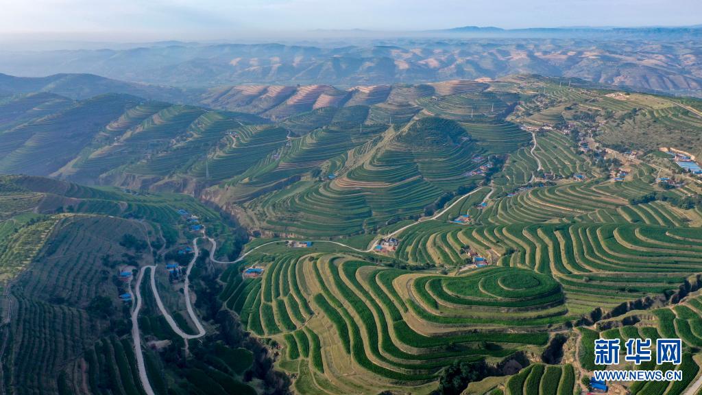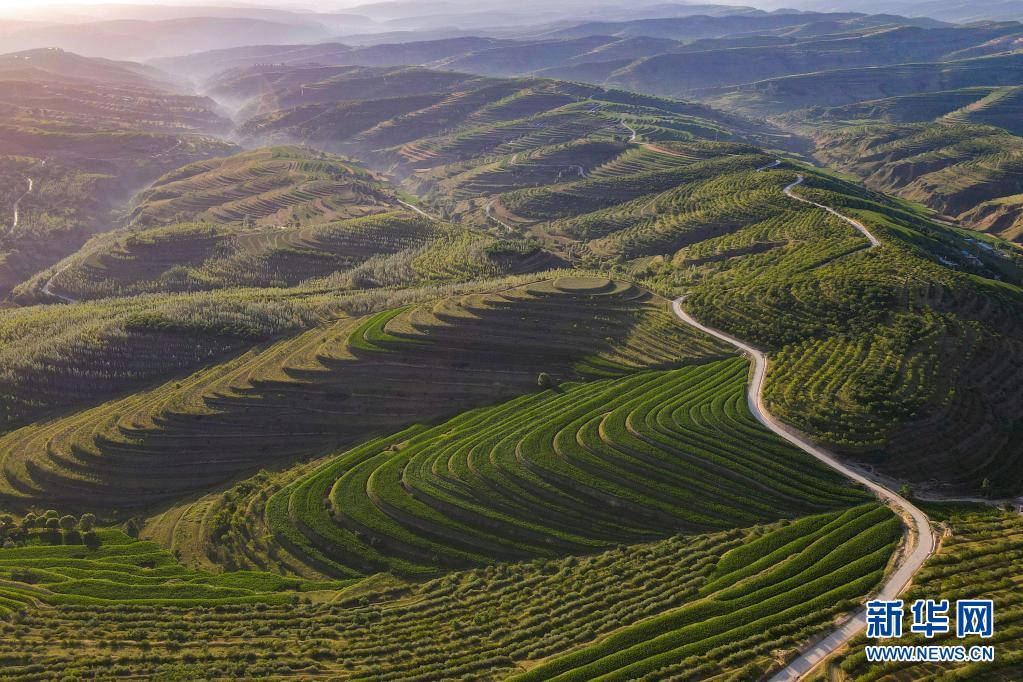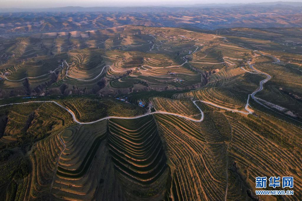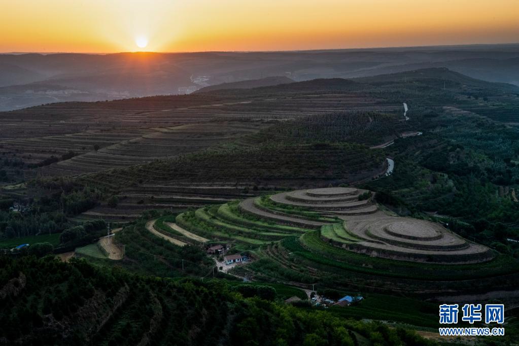 宁夏固原市彭阳县内有近百万亩旱作梯田,日出时分,层叠的梯田宛如水波般荡漾开去,美不胜收。