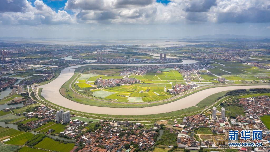城市“生态绿心”内部,300多万莆田人民的母亲河木兰溪缓缓流过(7月21日摄,无人机照片)。
