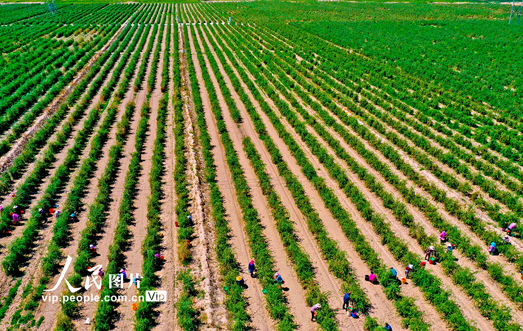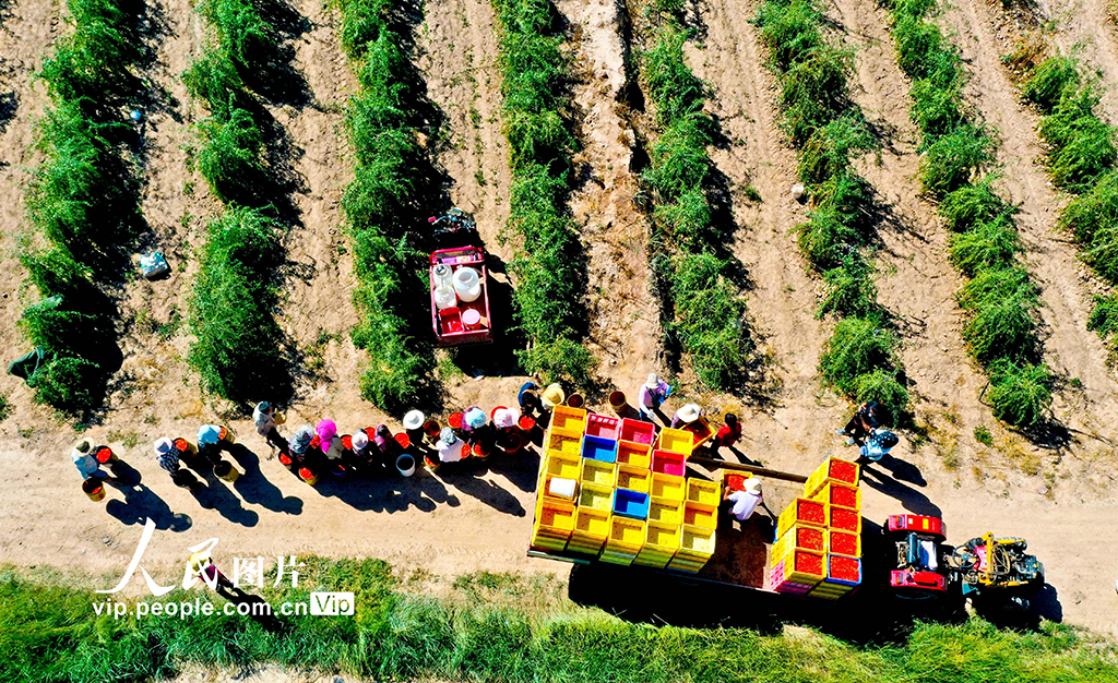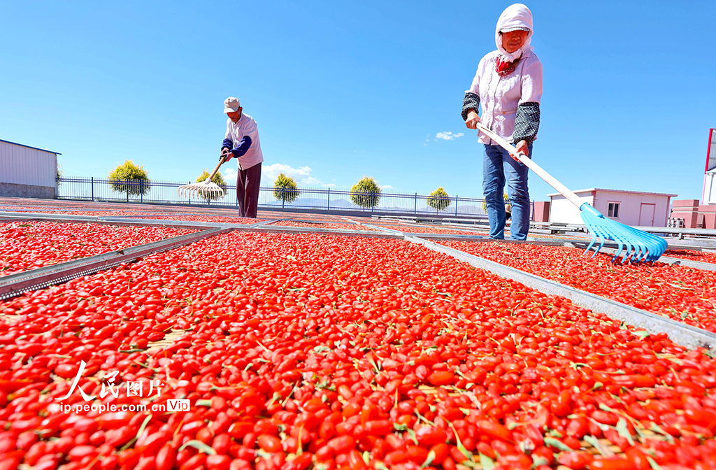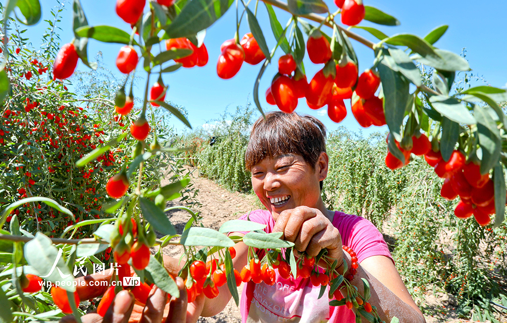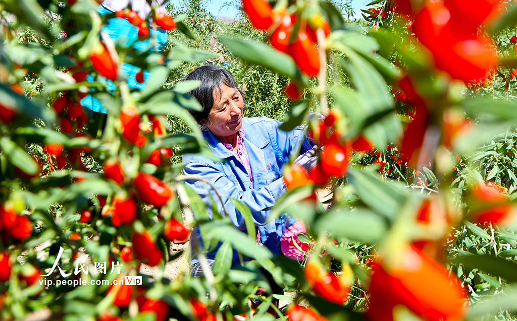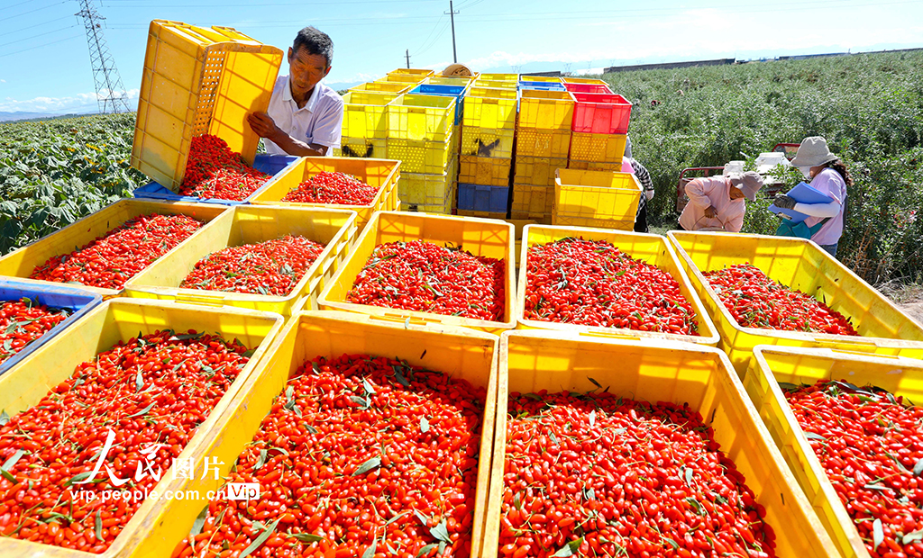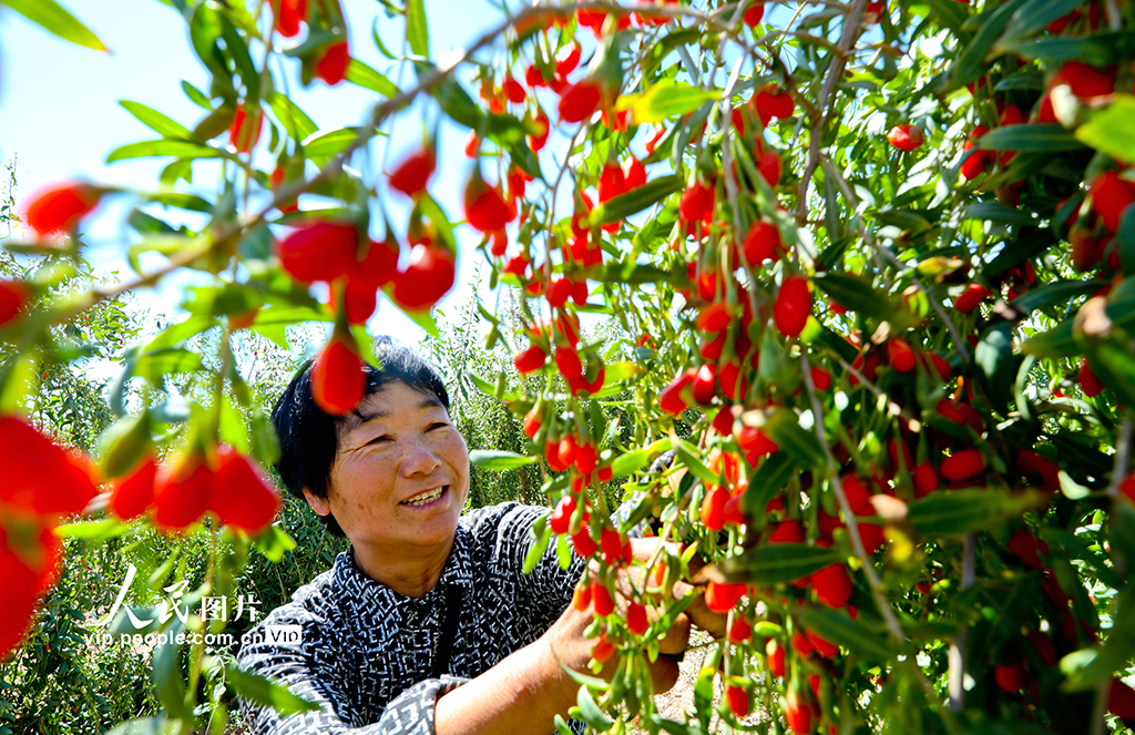 近年来,甘肃山丹县以“土地流转+农业”“特色产业+农业”等模式,大力推广发展以枸杞种植为代表的特色种植业。今年,种植的40000多亩枸杞获得大丰收,枸杞的丰收不仅使种植户获得收益,还带动了周边2000多名富余劳动力就近务工,让农户在家门口就业,实现“挣钱顾家两不误”。与此同时,生态枸杞种植还改善了种植区生态环境。王将摄(人民图片网)