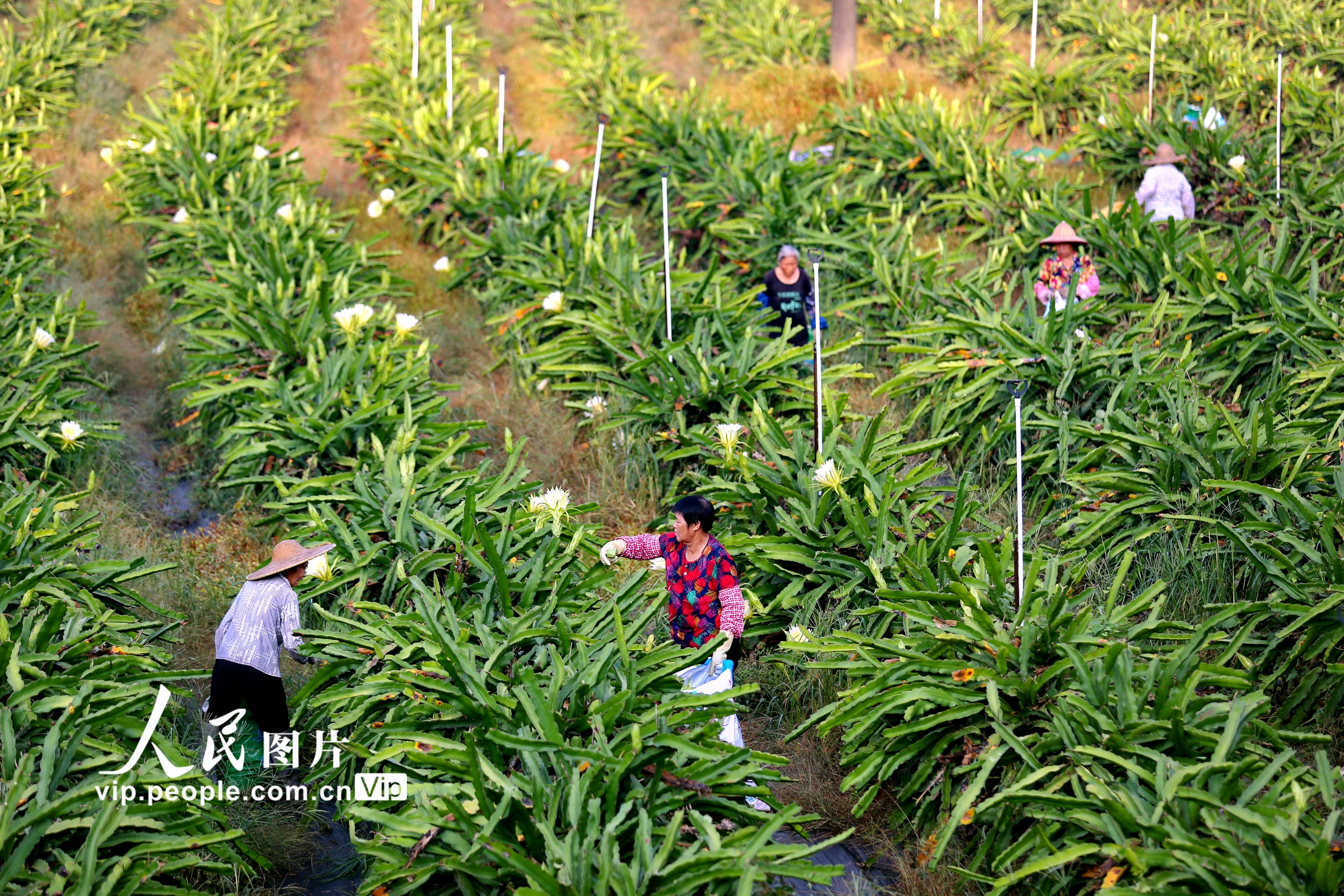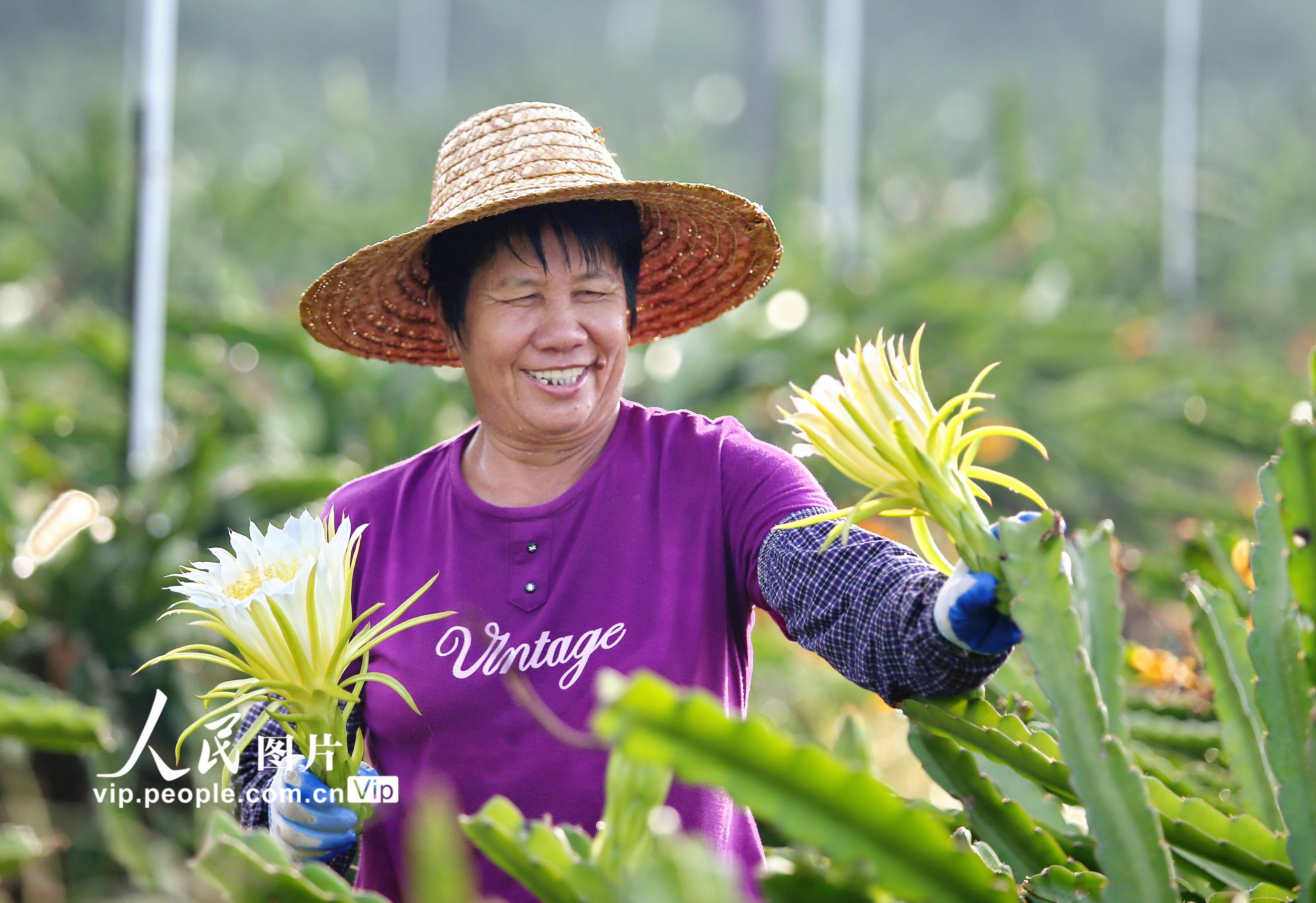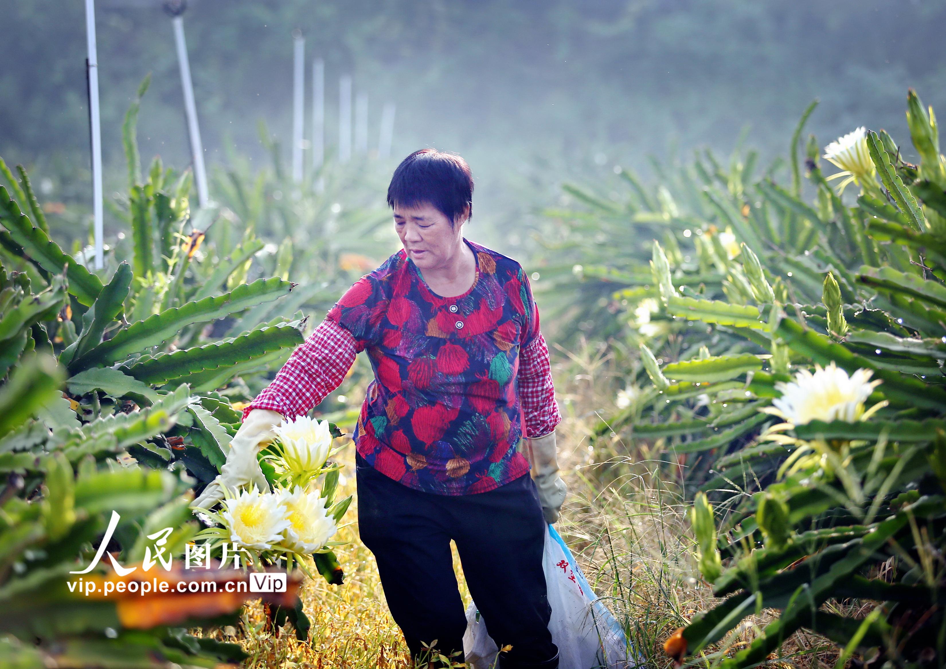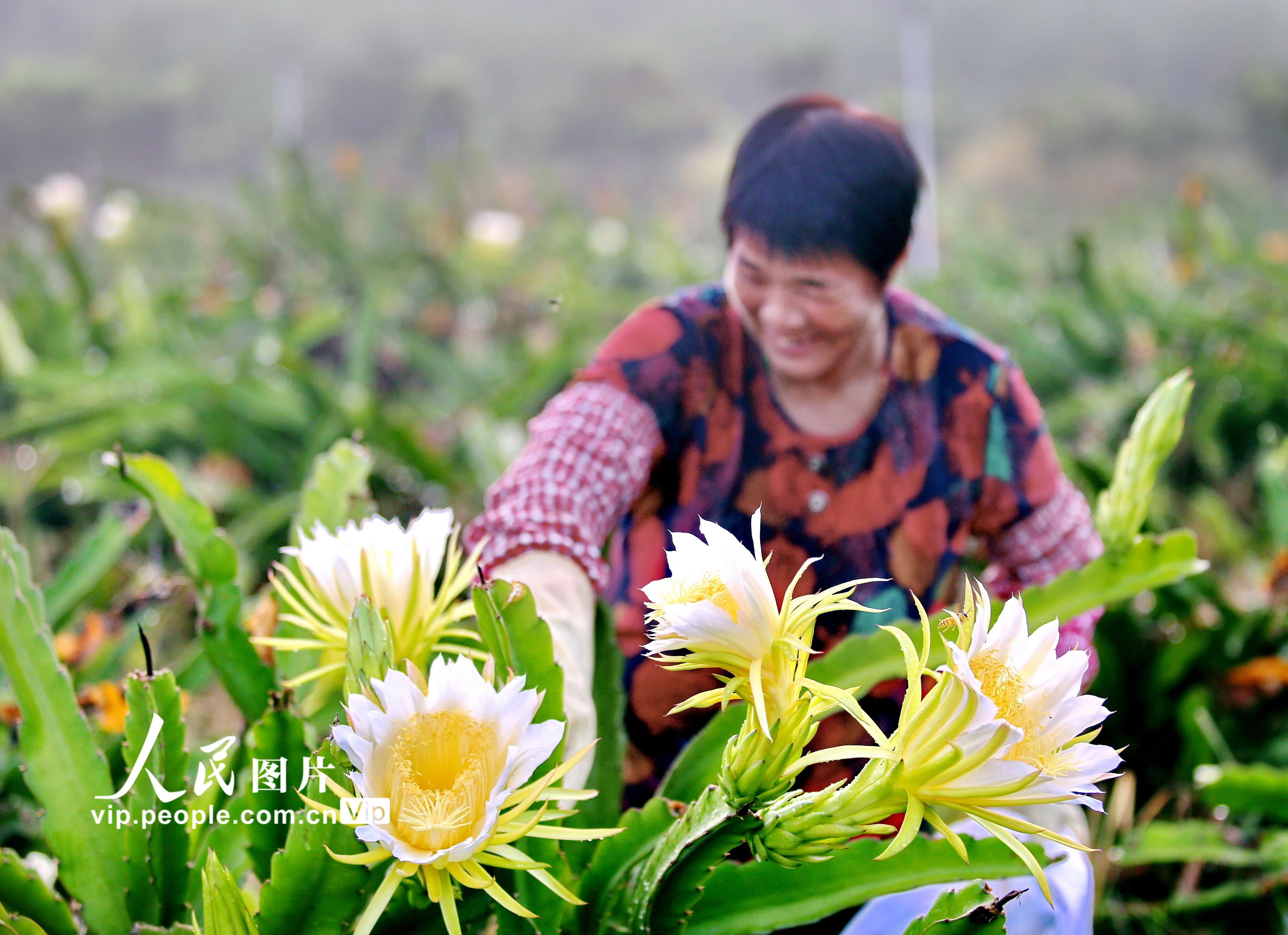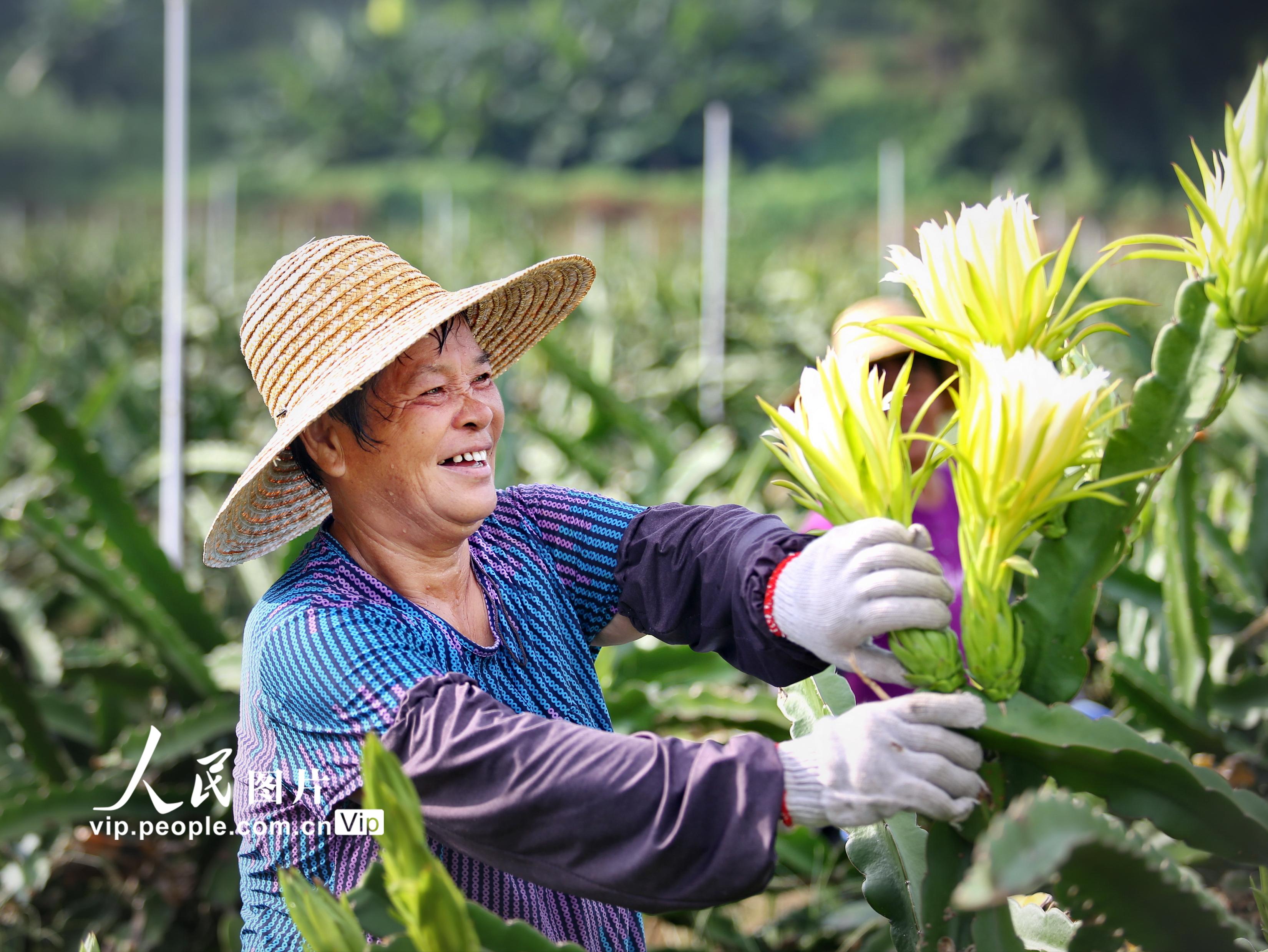 近年来,中胜村村委会依托青山绿水的生态优势和气候特点,因地制宜引导农民结合市场需求,引进霸王花种植作为农业发展方向。霸王花场为当地村民提供了就近就业岗位,帮助村民增收,同时也使村里的土地资源得到有效利用,助力乡村振兴。黄继明摄(人民图片网)