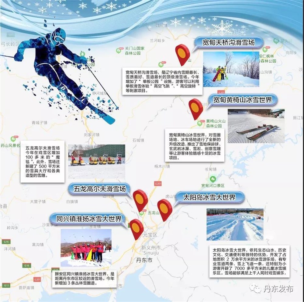 对于滑雪运动,丹东拥有得天独厚的气候条件,相比黑龙江和吉林、辽宁中北部,丹东的冬天气候没有那么冷。而且,丹东的滑雪场大多离市区比较近——坐着高铁,吃着火锅,吃饱就到丹东了。