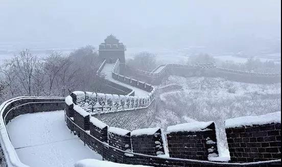 乘车远观银装素裹的虎山长城,犹如一条飞舞的雪龙。
