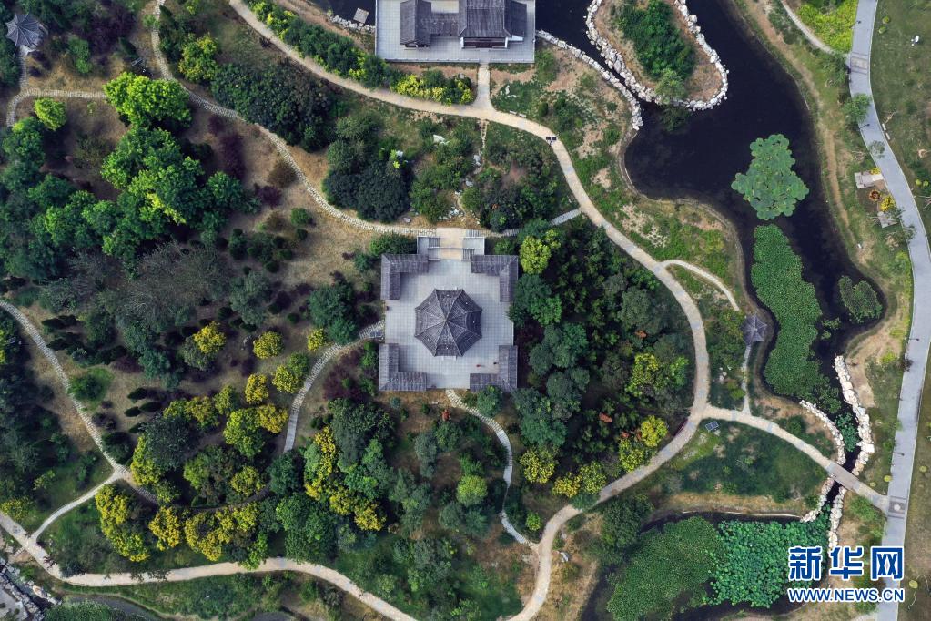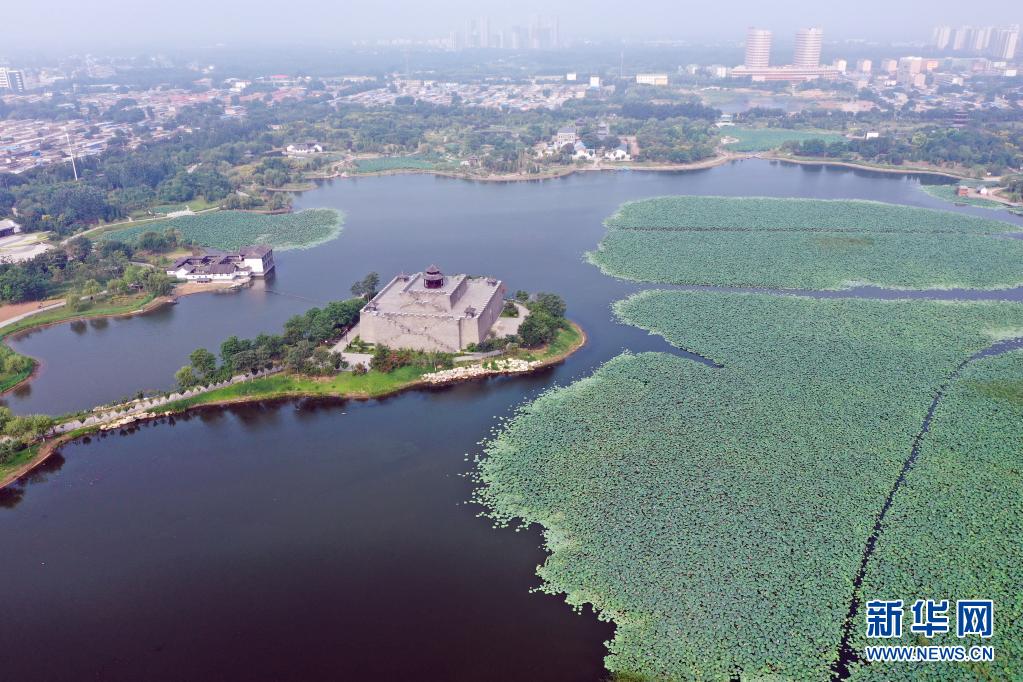 这是8月11日拍摄的河北省河间市古洋河公园景色(无人机照片)。