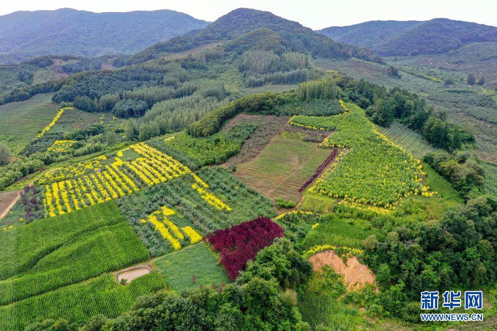 这是吉林省吉林市永吉县北大湖镇草庙子村一处山地,其中包括苗木、果树种植等项目(8月11日摄,无人机照片)。