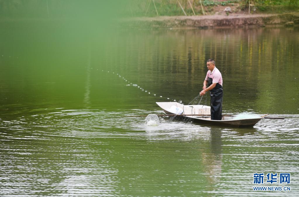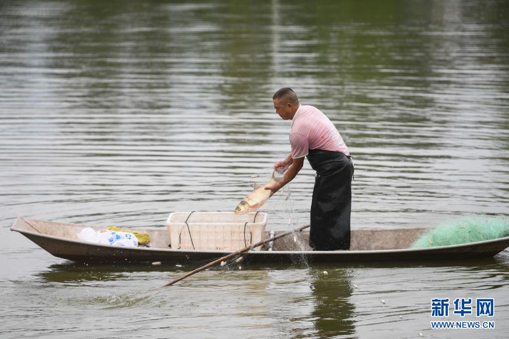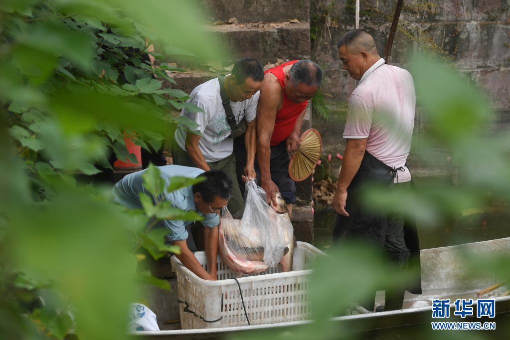 8月12日,璧山区正兴镇大面坡村工作人员在捕捞清水鱼。