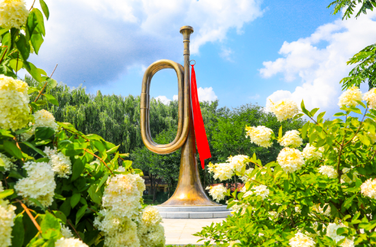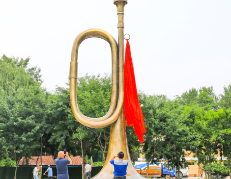 据了解,这个雕塑名为《胜利的号角》,整体采用黄铜锻造工艺,高10.25米,寓意每年10月25日是抗美援朝纪念日。
