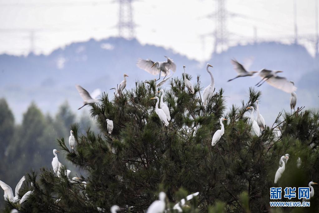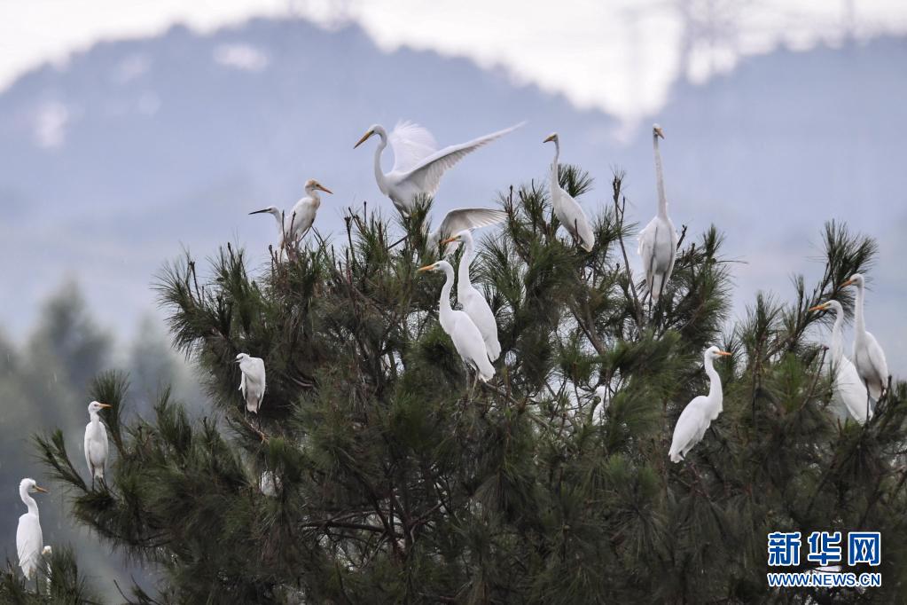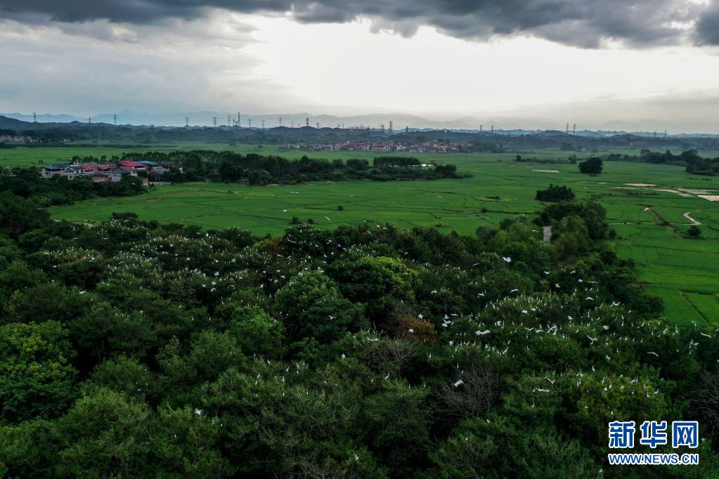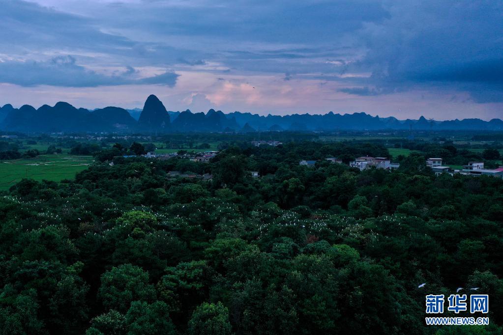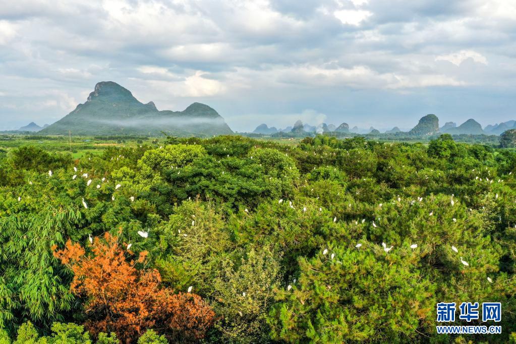 近年来,广西桂林市临桂区坚持经济发展与生态保护相结合,积极践行“绿水青山就是金山银山”理念,统筹山水林田湖草沙系统治理。经过努力,生态环境持续改善。在临桂区四塘镇王家村,自2019年起,便有白鹭、池鹭、牛背鹭、夜鹭等鸟类陆续来此筑巢繁衍,鹭鸟成为乡间的一道风景。