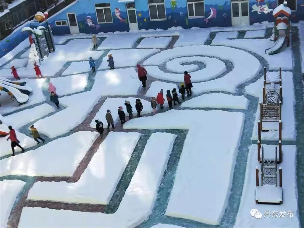“好漂亮的迷宫啊!”“太好玩啦!”今天一早,中国人民解放军966医院幼儿园的孩子们一入园,便发现银白色的操场被老师打造成了“雪迷宫”,大家兴奋地尖叫起来。