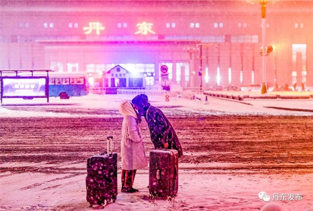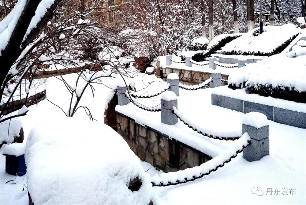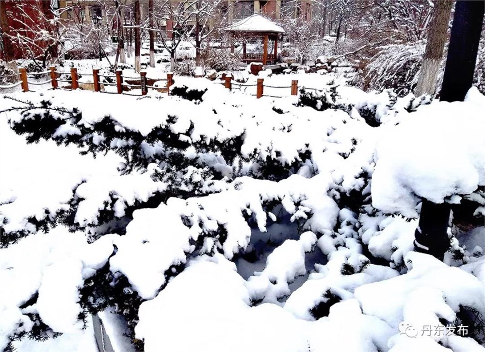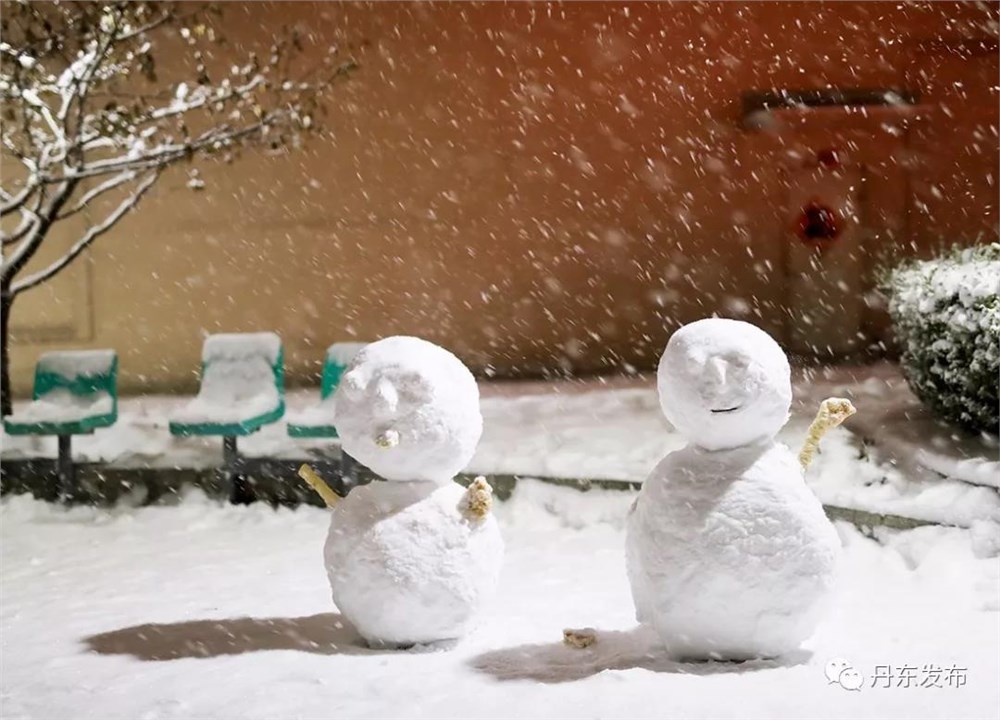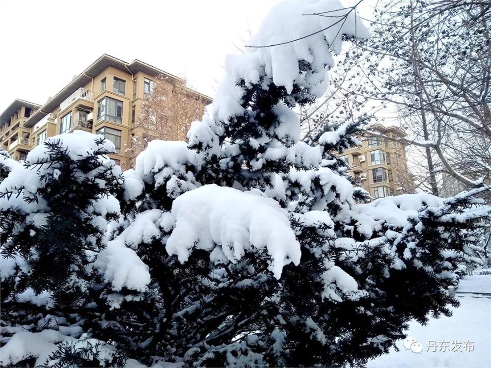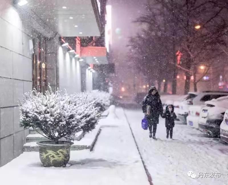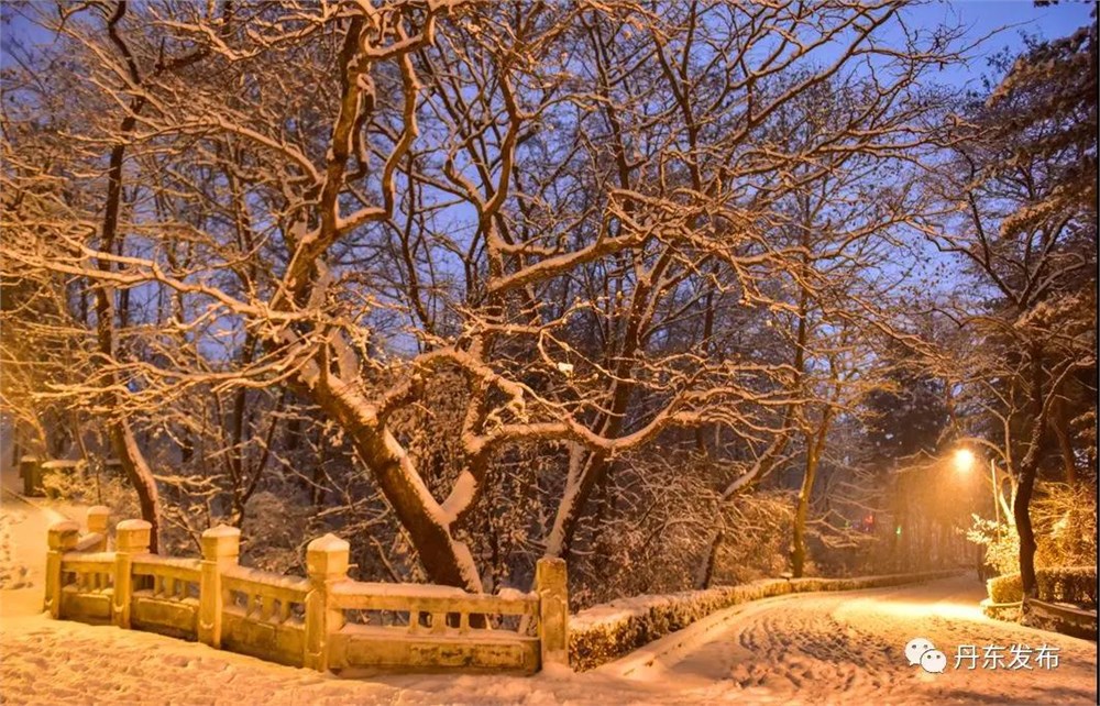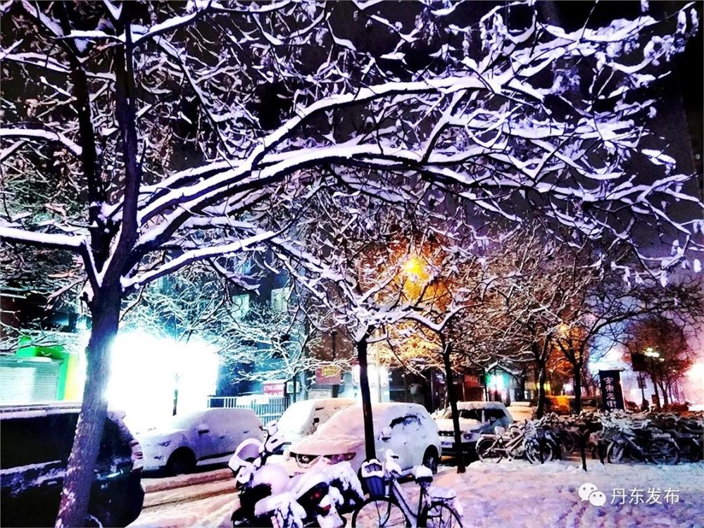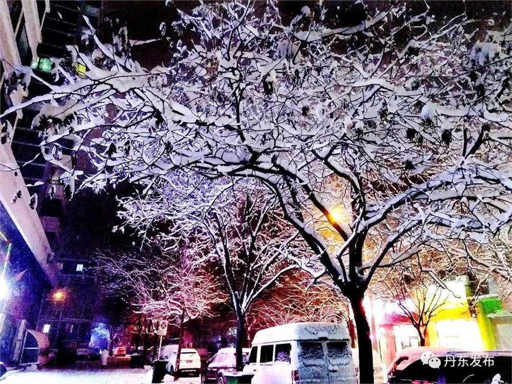 12月22日的一场雪城市披上银装灯光点亮寂静从夜景到雪景丹东幻化成了五彩斑斓的童话世界