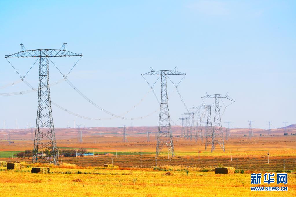 这是位于宁夏盐池境内的±800千伏灵绍直流输电工程(2020年10月19日摄)。新华社发