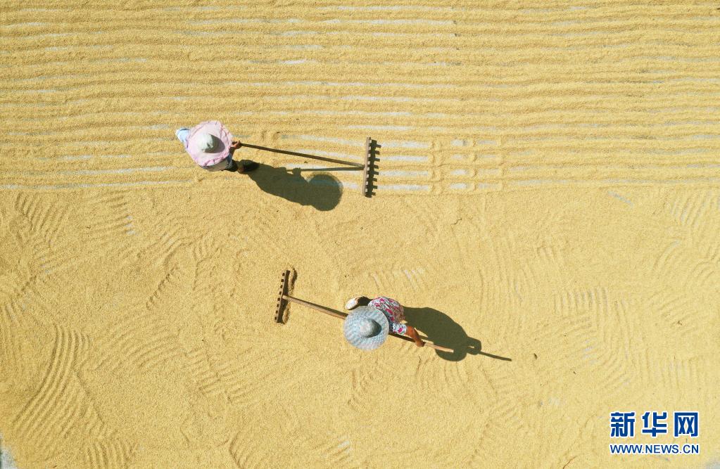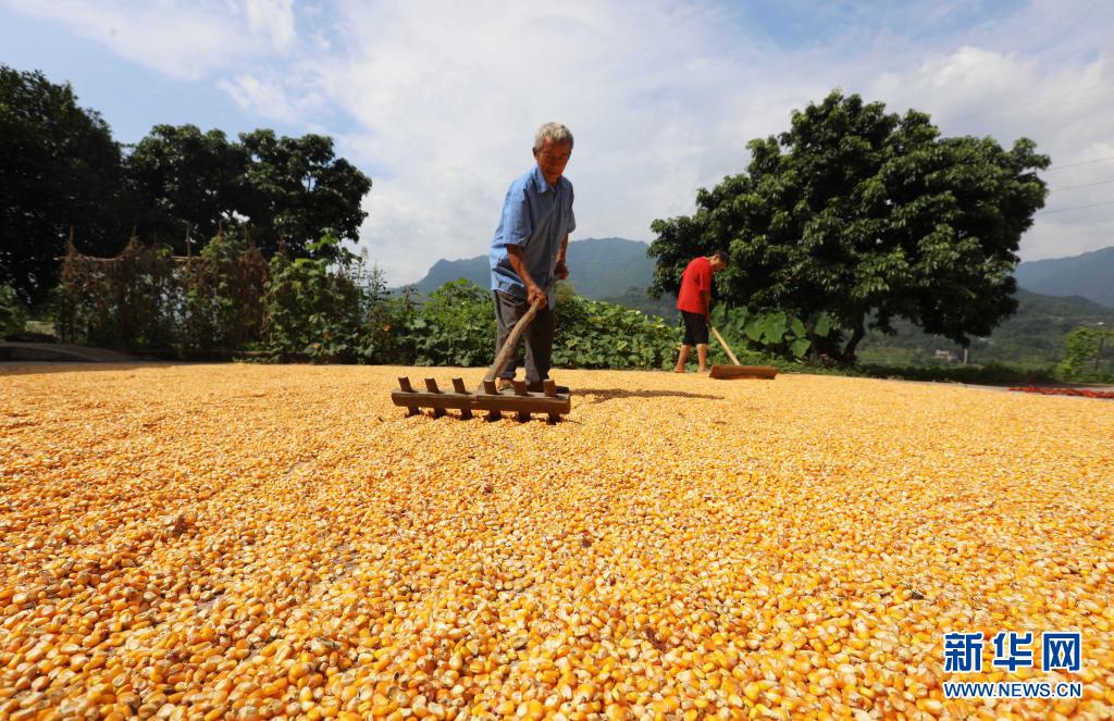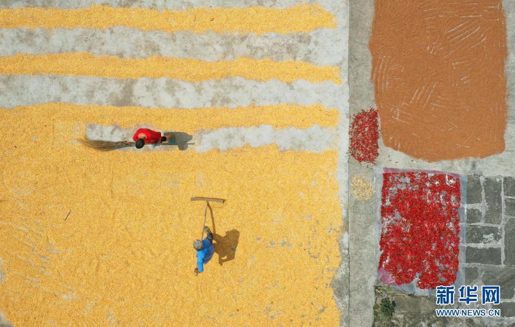 立秋过后,贵州省赤水市农民种植的水稻、高粱、玉米、辣椒等农作物迎来收获季,当地村民抢抓晴好天气将收获的农作物铺放在房前屋后的坝子中进行晾晒,构成一幅幅美丽的“晒秋图”。