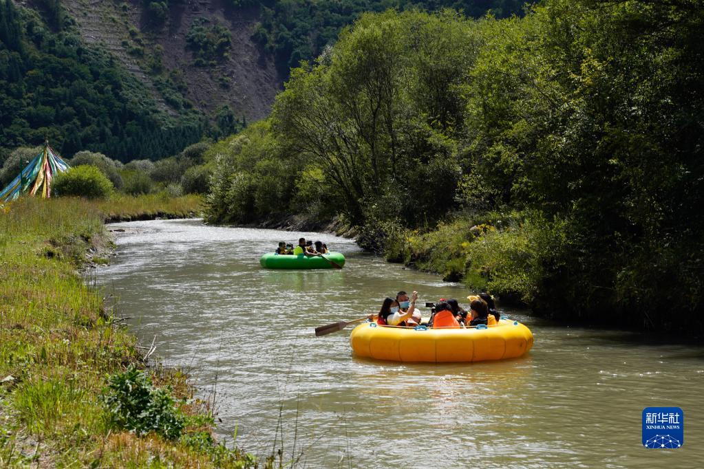 8月24日,游客在九寨沟爱情海景区拍照。