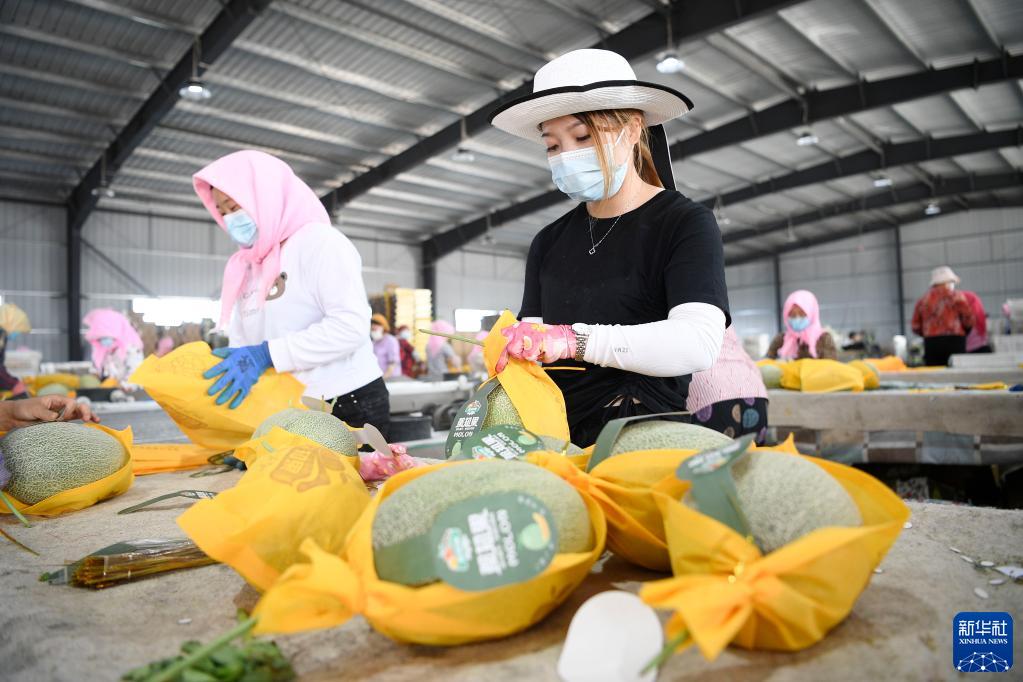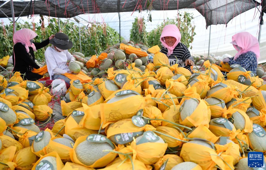 近日,宁夏银川市兴庆区月牙湖乡沙漠蜜瓜迎来丰收。月牙湖乡地处毛乌素沙漠与黄河交接处,优质沙土地与黄河水资源,给当地蜜瓜种植带来得天独厚的条件。
