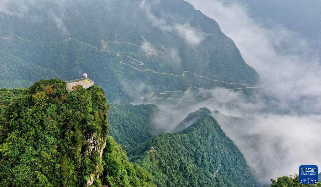 9月2日,游人乘坐索道游览龙头山景区(无人机照片)。