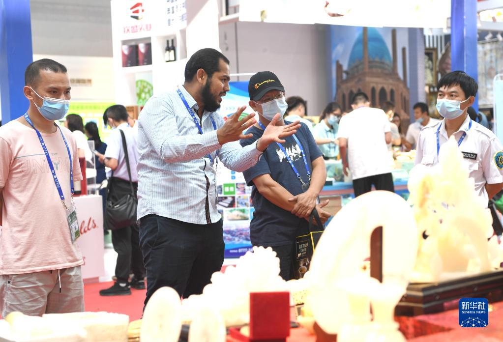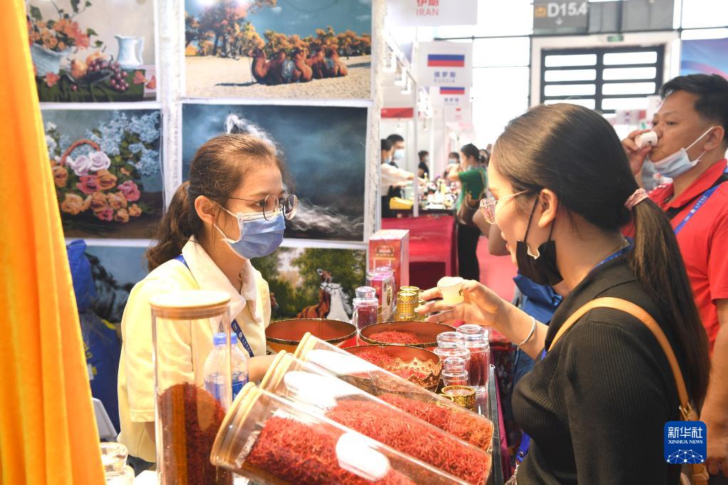 9月12日,参观者在广西南宁国际会展中心中国-东盟博览会“一带一路”国际展区体验俄罗斯香水。