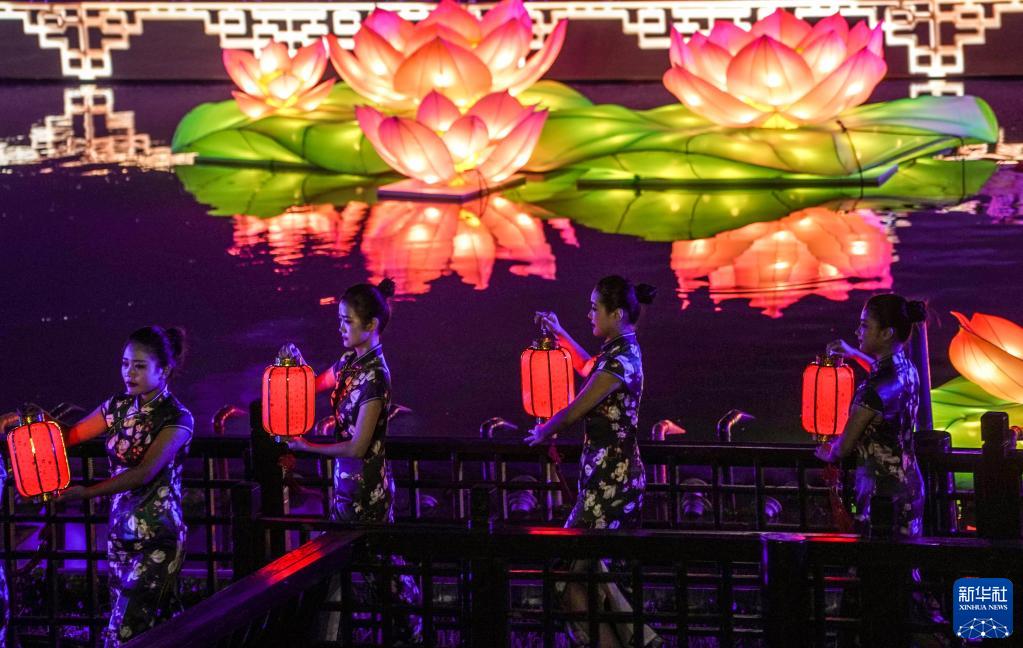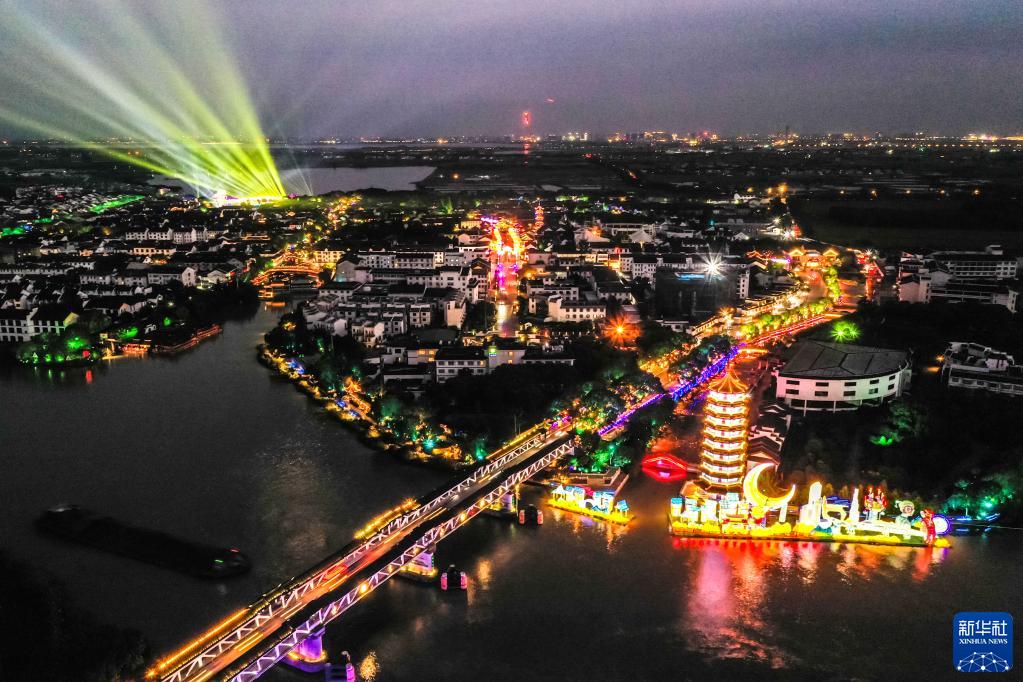 当日,2021海峡两岸(昆山)中秋灯会在江苏省昆山市周庄镇举行亮灯仪式。本次灯会以“花开并蒂 灯映两岸”为主题,通过传统彩灯、数字光影技术打造近百组灯组。