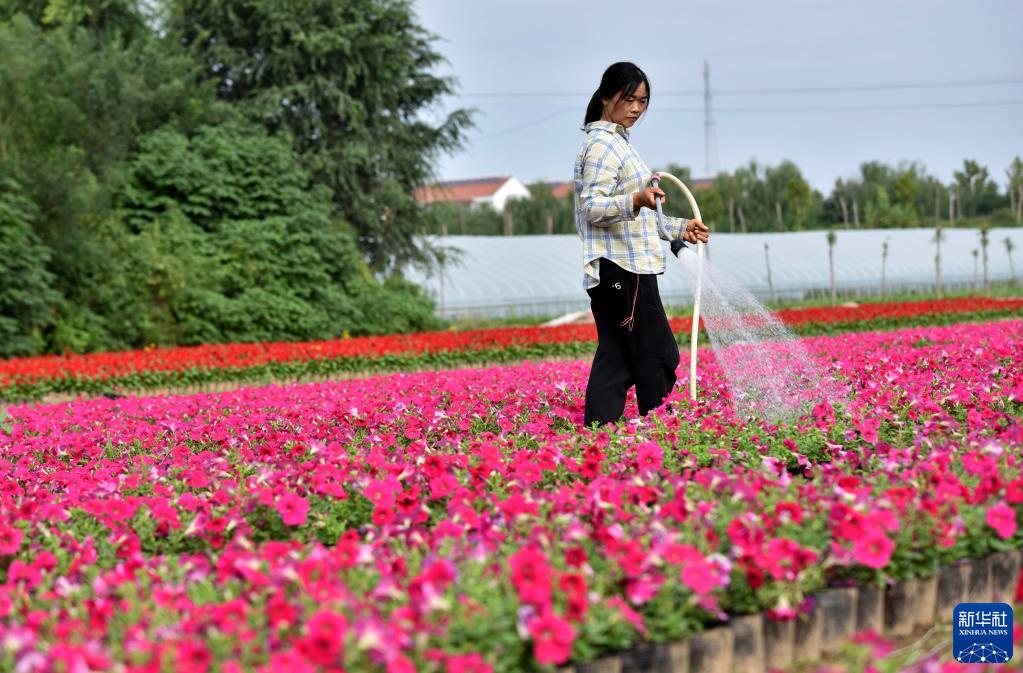 如今,王素霞的鲜花种植基地占地60余亩,建起了20个大棚。“种花养花让我们精气神十足,生活更有奔头。”王素霞说。