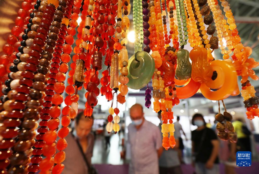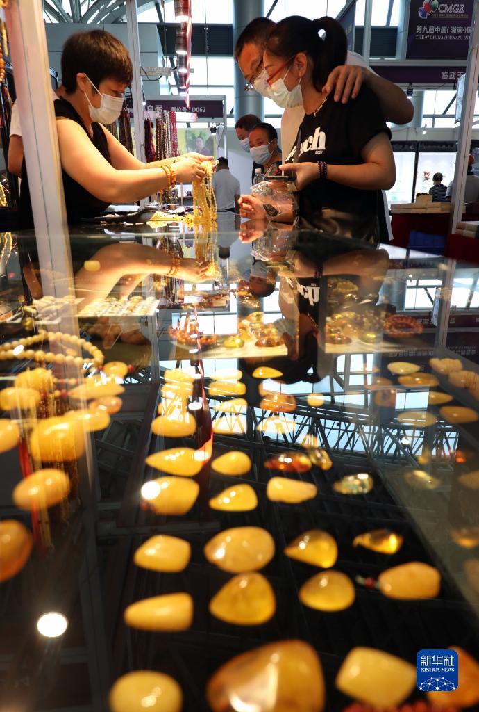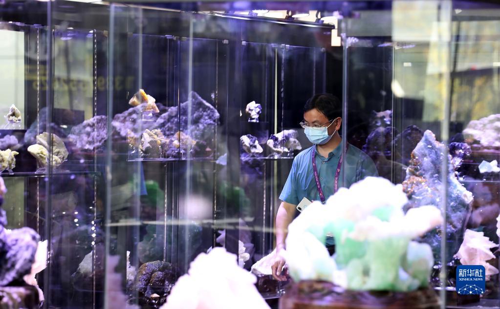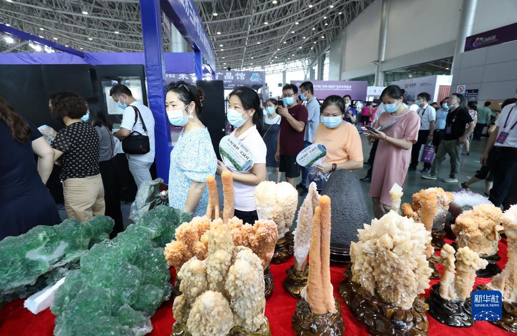 观众在第九届中国(湖南)国际矿物宝石博览会上参观(9月28日摄)。