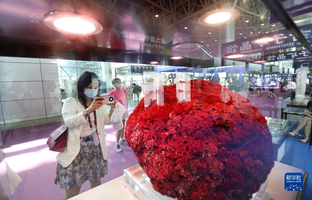 9月28日,第九届中国(湖南)国际矿物宝石博览会在郴州国际会展中心开幕。此次矿博会以“神奇的矿晶,恒久的铜”为主题,采取“线上+线下”形式进行。线下以郴州国际会展中心为主展览馆,展览面积约6万平方米,共设约1000个国际标准展位,分为矿物晶体区、彩色宝石区、化石陨石区、工艺品区四大展示展销主题区。主要展示萤石、方解石、水晶等郴州本土特色矿物晶体,及自然铜、祖母绿、海蓝宝等其他地区矿物精品。
