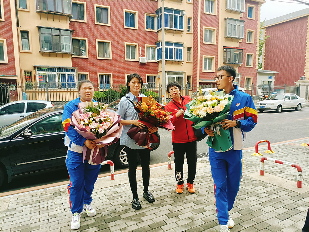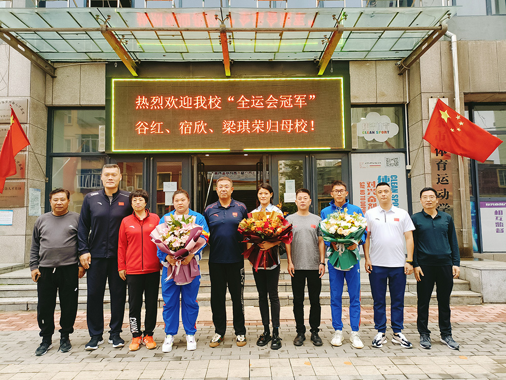 “全运会冠军回来了!”“学哥学姐,欢迎你们回家!”当亲眼见到以往只在电视里看到过的冠军哥哥姐姐,丹东市体育运动学校的小运动员们激动地欢呼。10月3日,刚刚获得第十四届全运会拳击女子69公斤级冠军谷红、柔道女子78公斤以上级冠军宿欣、田径男子1500米冠军梁琪来到阔别已久的母校——市体育运动学校,看望启蒙教练,并与学弟学妹们分享全运会夺冠历程、重温儿时求学时光。