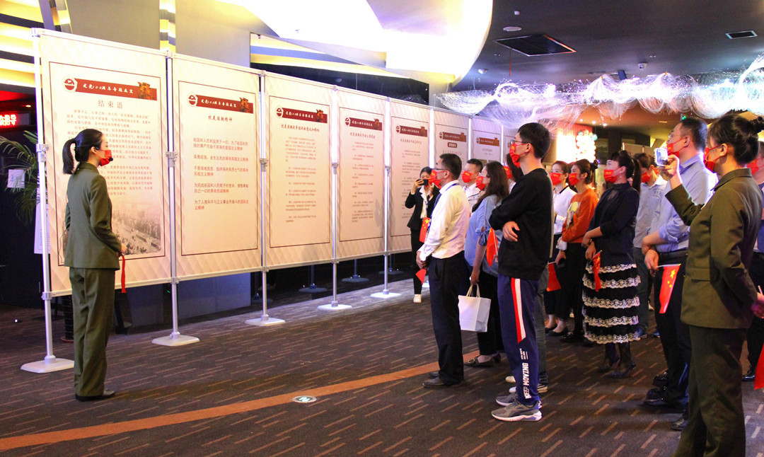 当天,市民岳女士带着女儿前来观看《长津湖》,等候期间,她驻足在展板前细细观看。她说,这样的展览很有教育意义,与电影相结合,让大家更深入地了解抗美援朝历史。