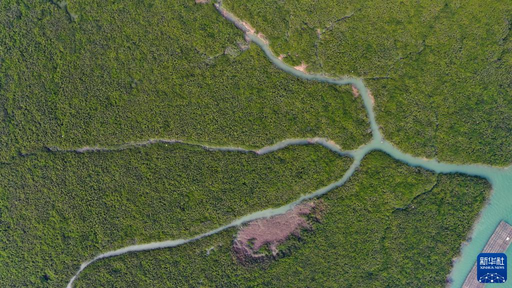 这是广西钦州市钦南区一片红树林(8月8日摄,无人机照片)。