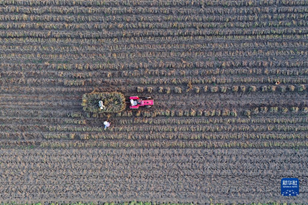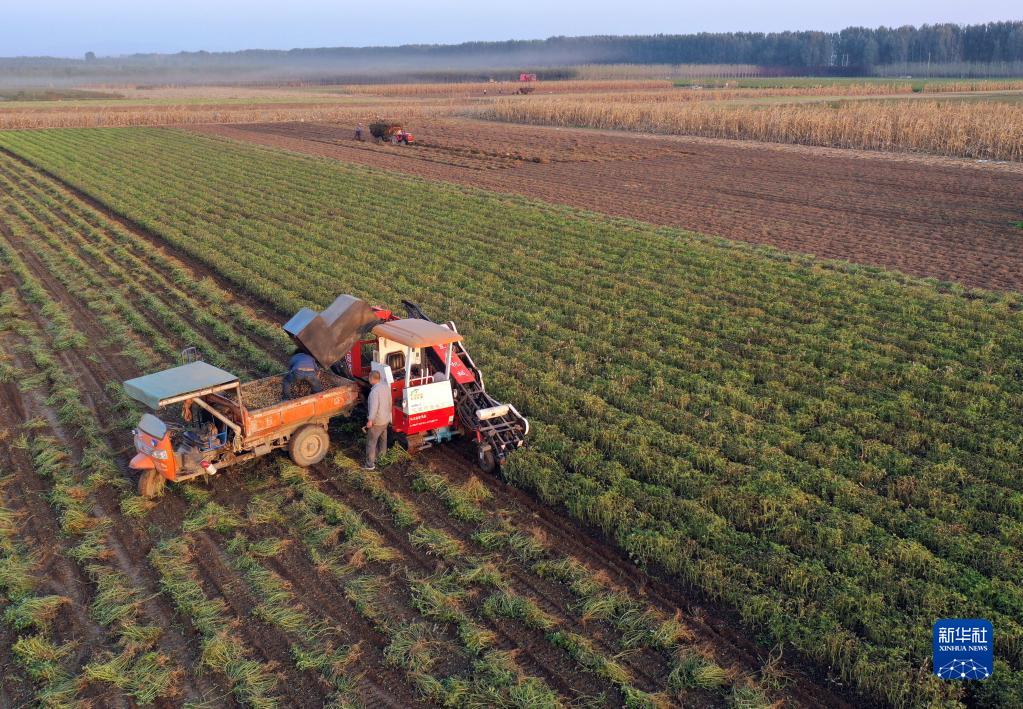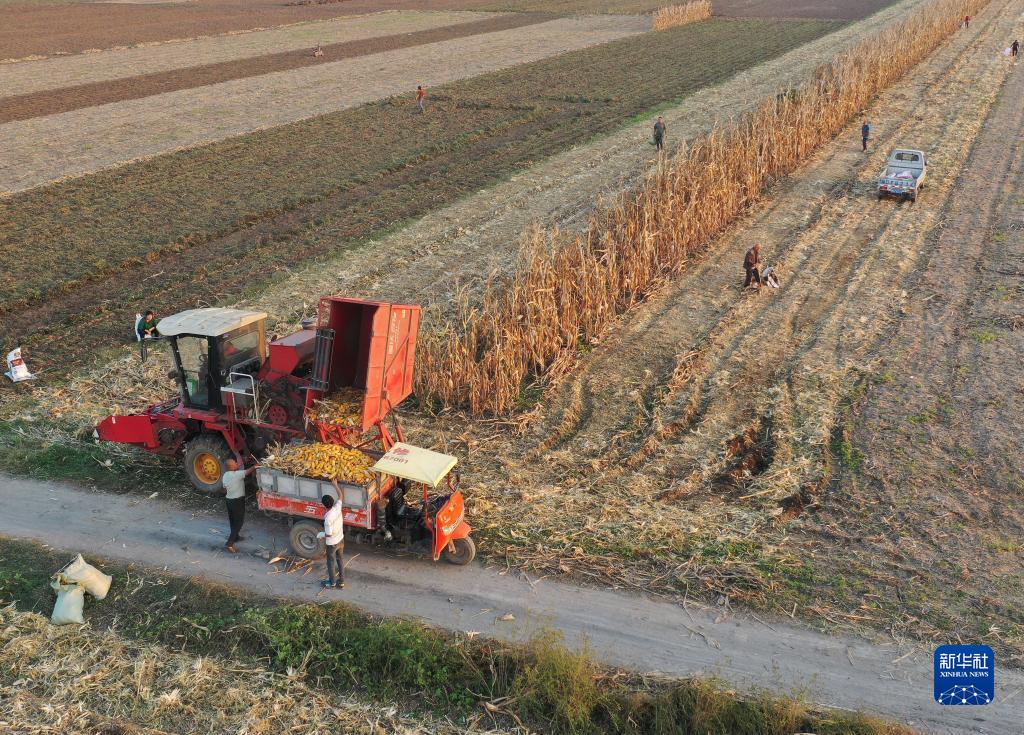 当日,河南省宝丰县迎来晴好天气,当地农民抓紧时间抢收作物保收成。