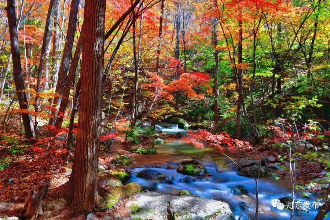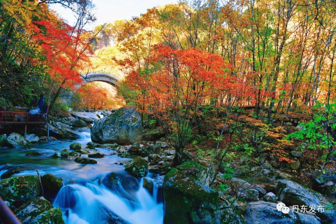 今年秋季雨水偏多,天桥沟山涧溪谷迎来了难得的盛水期。山麓间,秋风轻拂山林溪流,一场秋雨一场早露,惹得山间色彩渐变斑斓,森林的颜色都切换到了高饱和度模式。