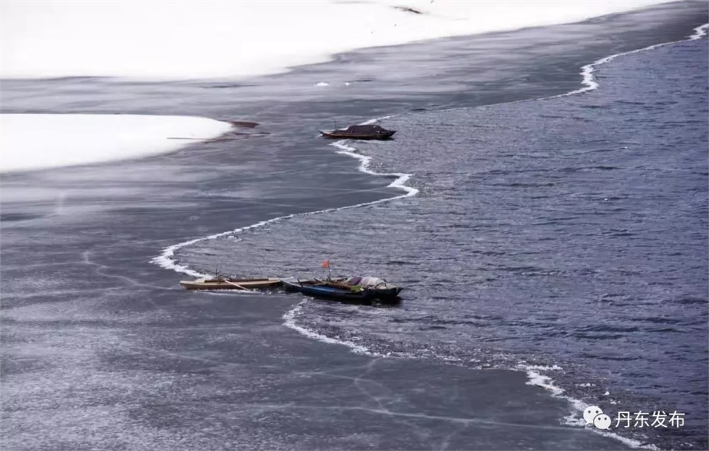 进入冬季,鸭绿江边的水没地被冰雪覆盖,组成了像山水画一样的冰雪景观。