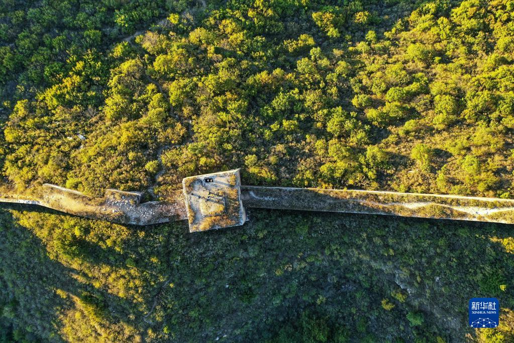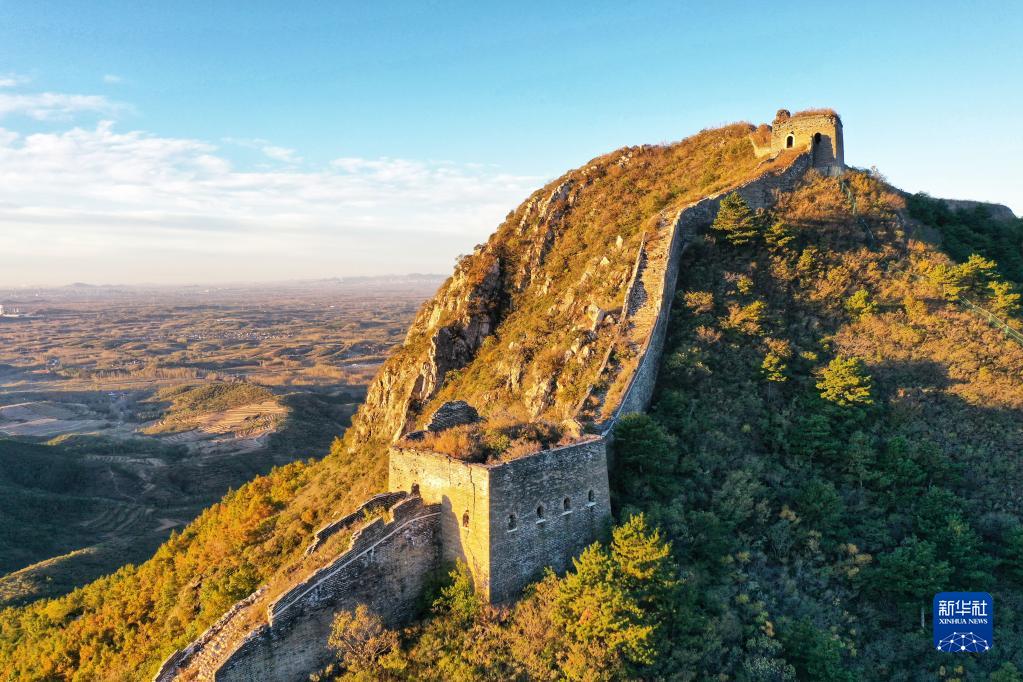 深秋时节,位于河北省迁安市的巍峨长城与连绵山岭交相映衬,风光壮美。