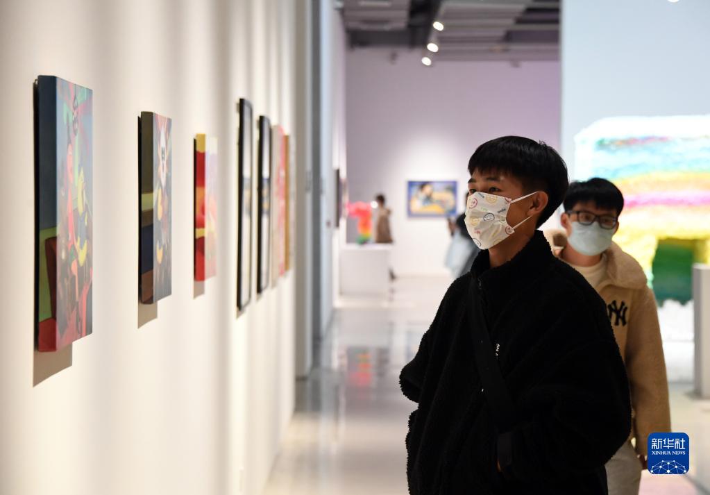 10月16日,人们在北京时代美术馆参观“潮极玩家——潮流艺术大展”。