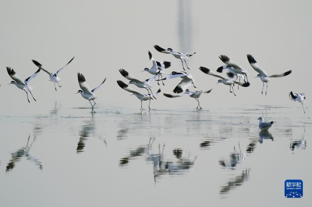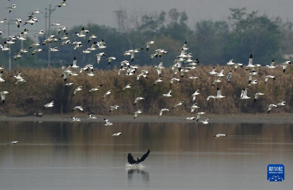 近日,大批候鸟飞抵河北省唐山市曹妃甸湿地休憩、觅食。近年来,曹妃甸区持续加大湿地保护力度,使生态环境得到明显改善,候鸟种类、数量明显增多。