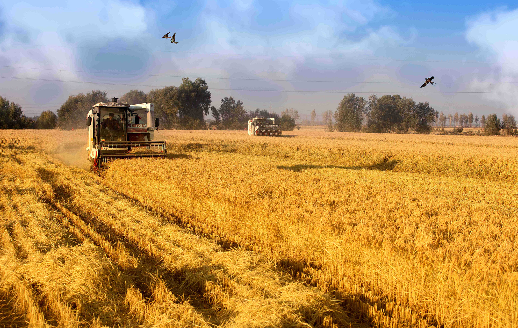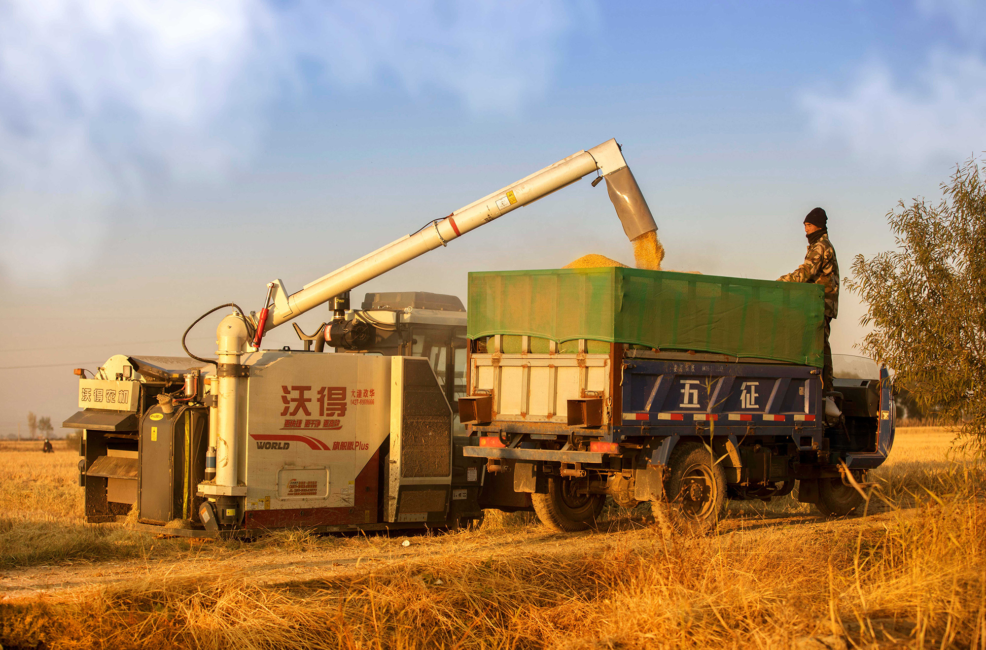 辽宁锦州:机器轰鸣忙收获 颗粒归仓粮囤满