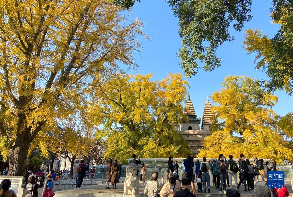 10月31日,人们在北京五塔寺欣赏秋景(手机照片)。