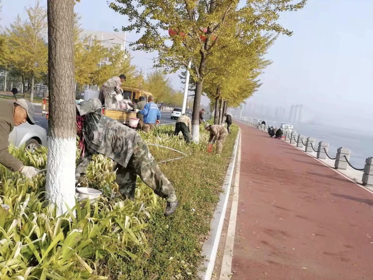 近日,丹东合作区建设局对合作区主次干道及公园内共计2.5万余棵行道树开展涂白养护工作。