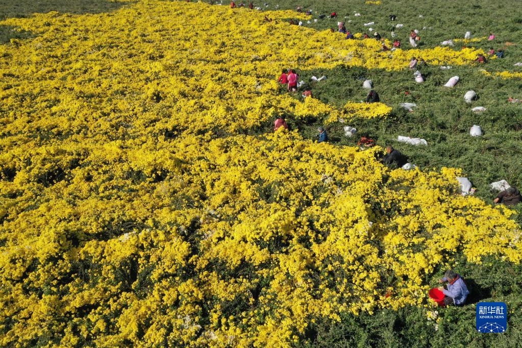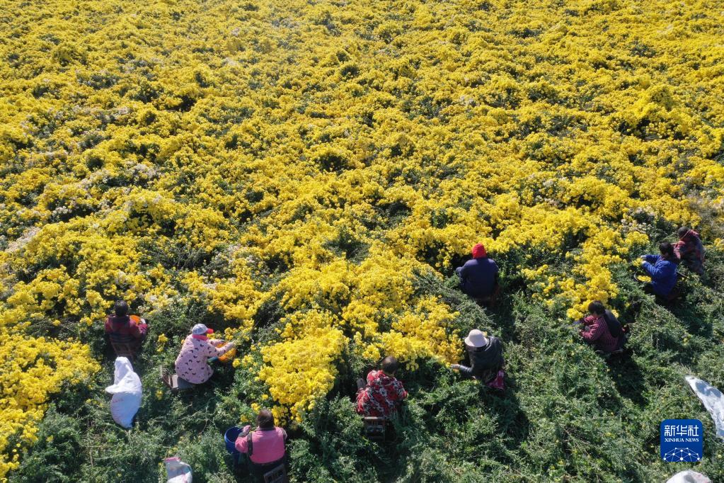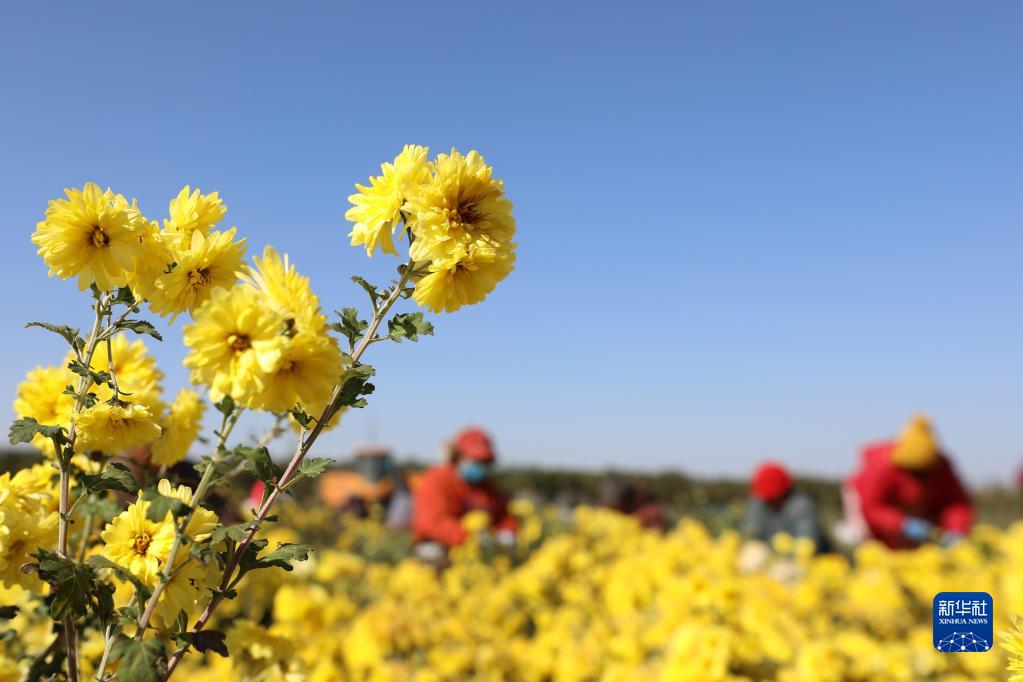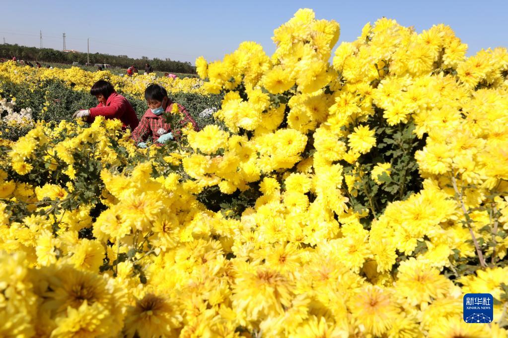 初冬时节,在河南省焦作市温县,怀菊花陆续进入收获季,当地农民们抓紧晴好天气采收、加工、销售。
