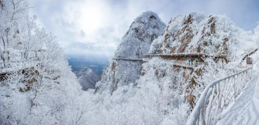 11月9日清晨,位于辽宁丹东凤城市境内的名山凤凰山,出现今冬首次雾凇美景。放眼望去,凤凰山之巅处处是轻盈洁白的雾凇。