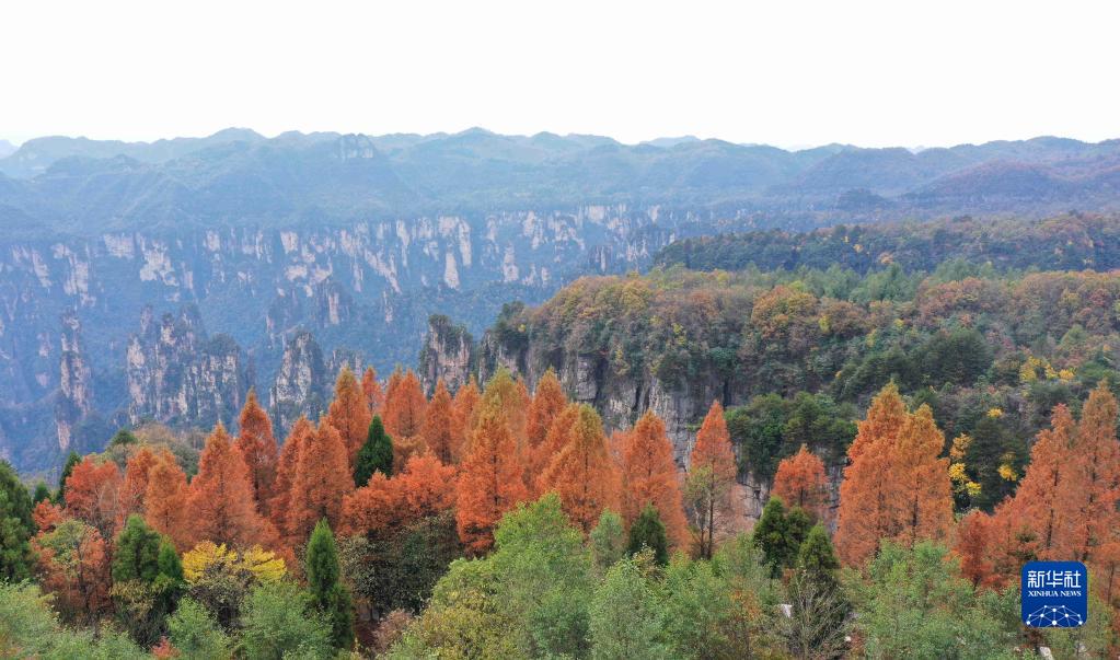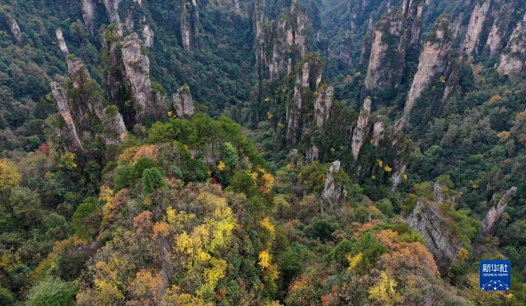 眼下,在湖南张家界武陵源,连绵的峰林色彩斑斓,景色迷人。